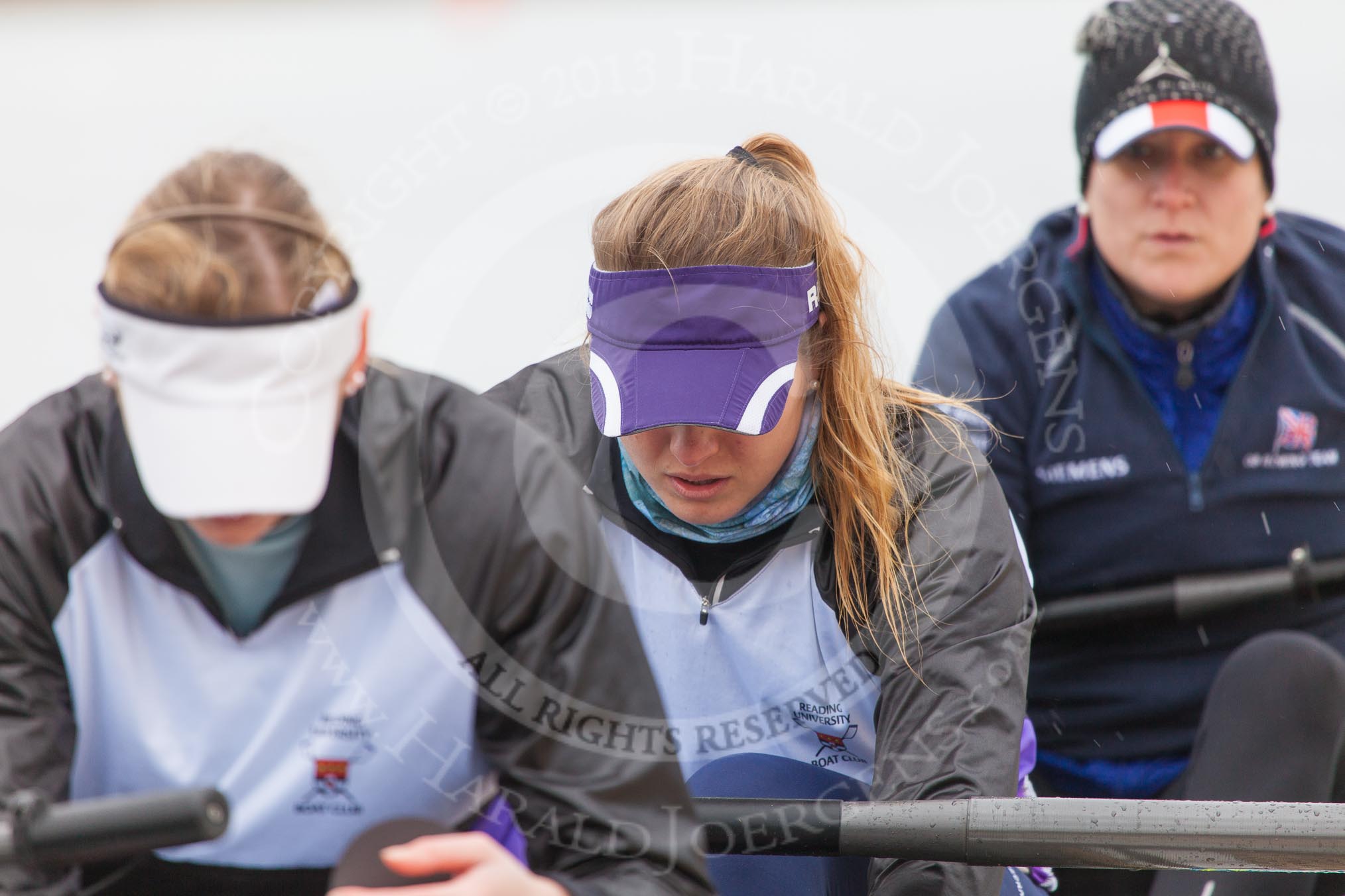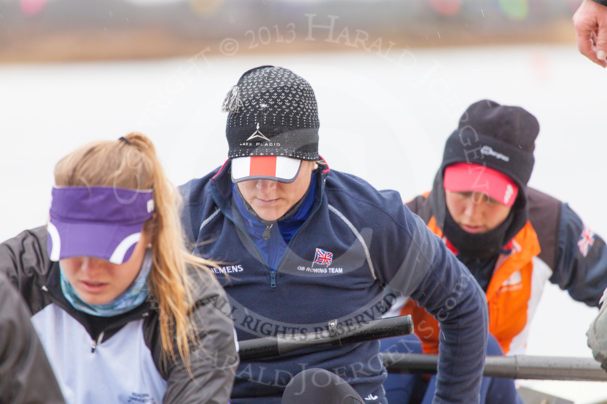 The Boat Race season 2013 - fixture OUWBC vs Olympians: In the Olympians boat 4 seat Bethan Walters, 3 Christiana Amacker and 2 Kate Johnson.. Dorney Lake, Dorney, Windsor, Buckinghamshire, United Kingdom, on 16 March 2013 at 11:11, image #36