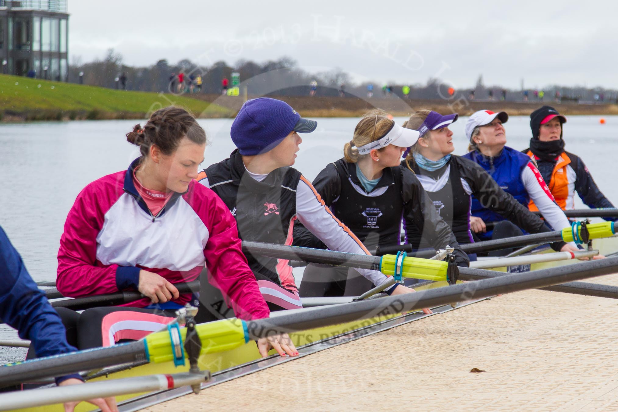 The Boat Race season 2013 - fixture OUWBC vs Olympians: In the Olympians boat 3 seat Christiana Amacker, 2 Kate Johnson and at bow Natasha Townsend.. Dorney Lake, Dorney, Windsor, Buckinghamshire, United Kingdom, on 16 March 2013 at 11:11, image #34