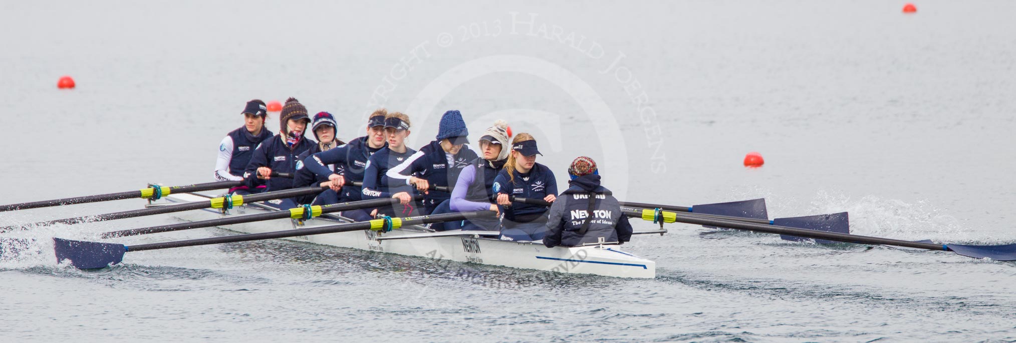 The Boat Race season 2013 - fixture OUWBC vs Olympians: In the Oxford (OUWBC) Blue Boat cox Katie Apfelbaum, stroke Maxie Scheske, Anastasia Chitty, Harriet Keane, Amy Varney, Jo Lee, Mary Foord-Weston, Alice Carrington-Windo, and at bow Mariann Novak.. Dorney Lake, Dorney, Windsor, Buckinghamshire, United Kingdom, on 16 March 2013 at 11:30, image #56