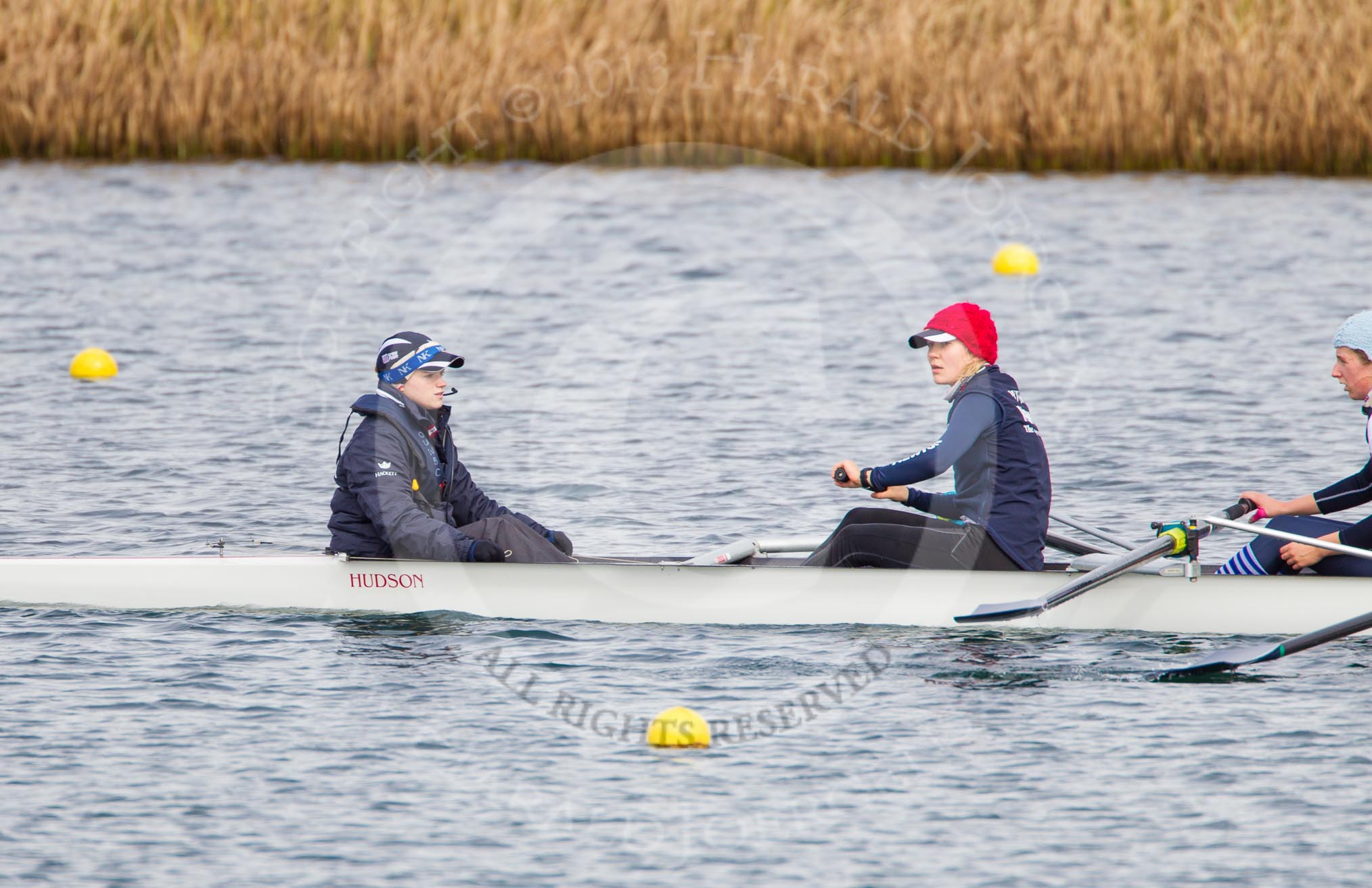 The Boat Race season 2013 - fixture OUWBC vs Olympians: In the Oxford (OUWBC) reserve boat Osiris 7 seat Annika Bruger, stroke Emily Chittock and cox Sophie Shawdon.. Dorney Lake, Dorney, Windsor, Buckinghamshire, United Kingdom, on 16 March 2013 at 11:20, image #53