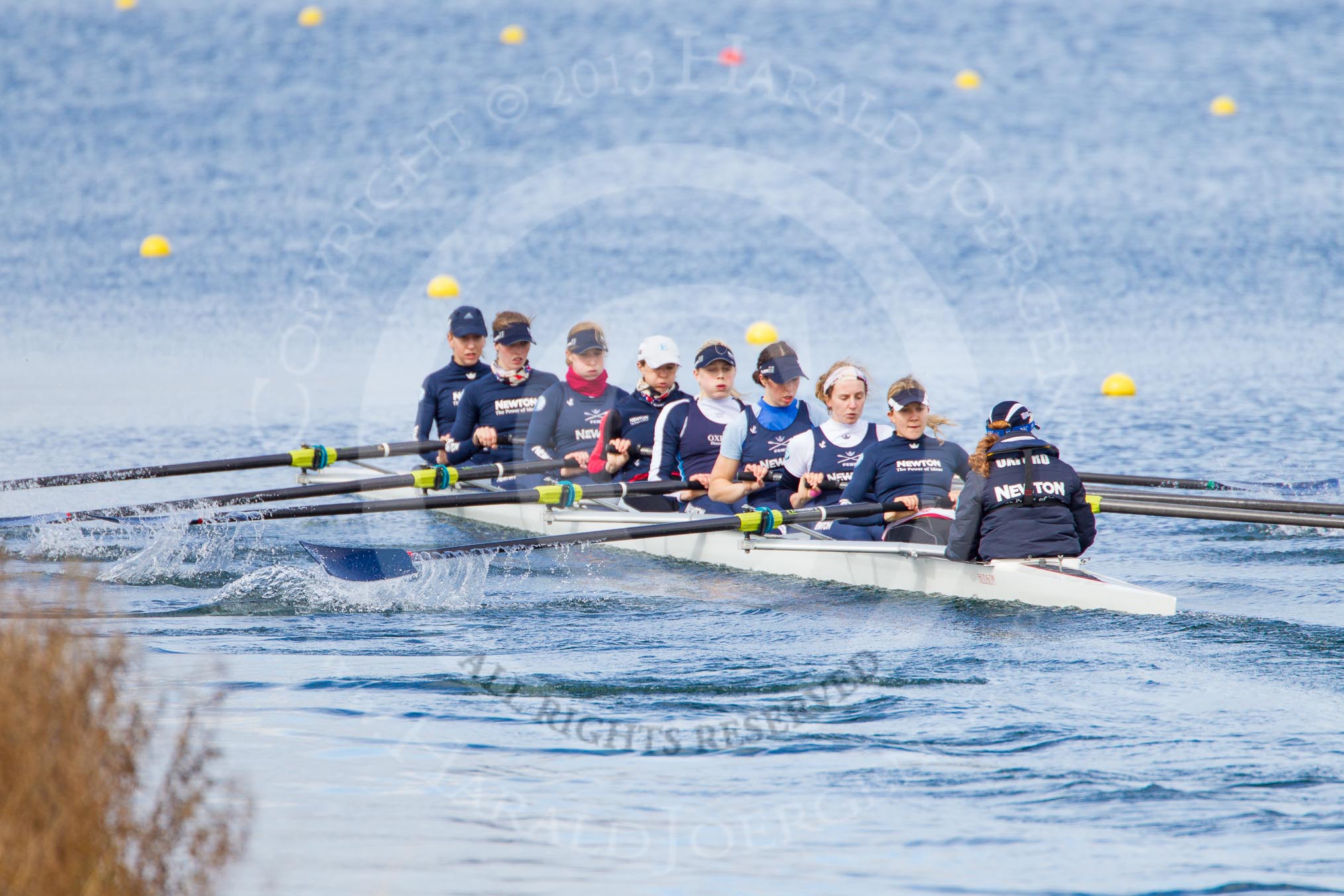 The Boat Race season 2013 - fixture OUWBC vs Olympians: In the Oxford (OUWBC) Blue Boat at bow Mariann Novak, Alice Carrington-Windo, Mary Foord-Weston, Jo Lee, Amy Varney, Harriet Keane, Anastasia Chitty, stroke Maxie Scheske, and cox Katie Apfelbaum..