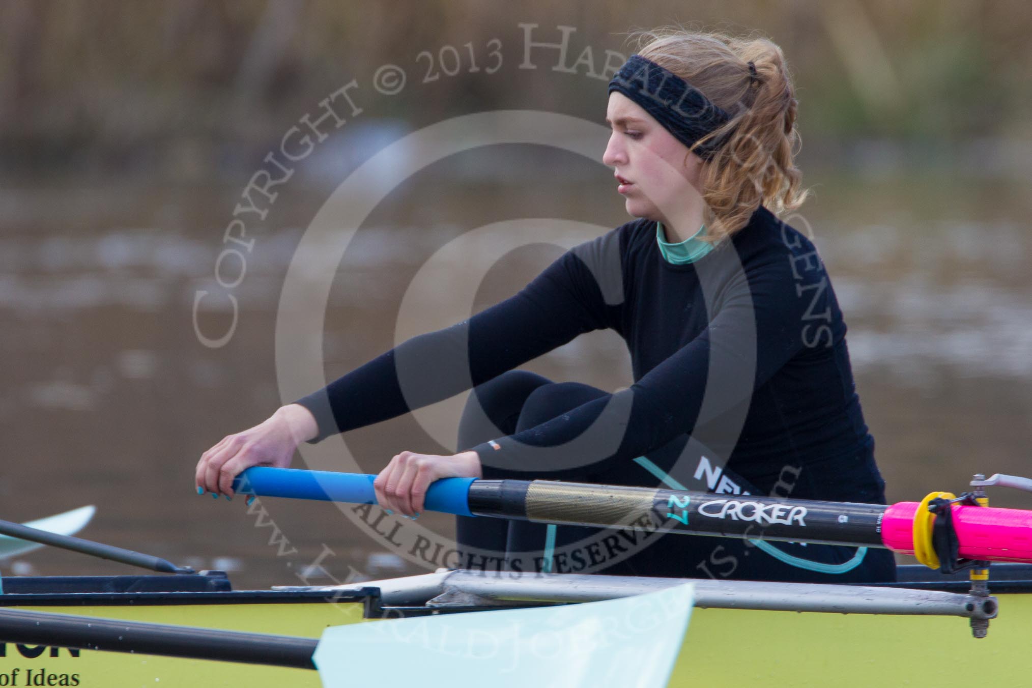 The Boat Race season 2013 - CUWBC training: The CUWBC reserve boat Blondie, stroke Katie-Jane Whitlock.. River Thames near Remenham, Henley-on-Thames, Oxfordshire, United Kingdom, on 19 March 2013 at 15:32, image #35
