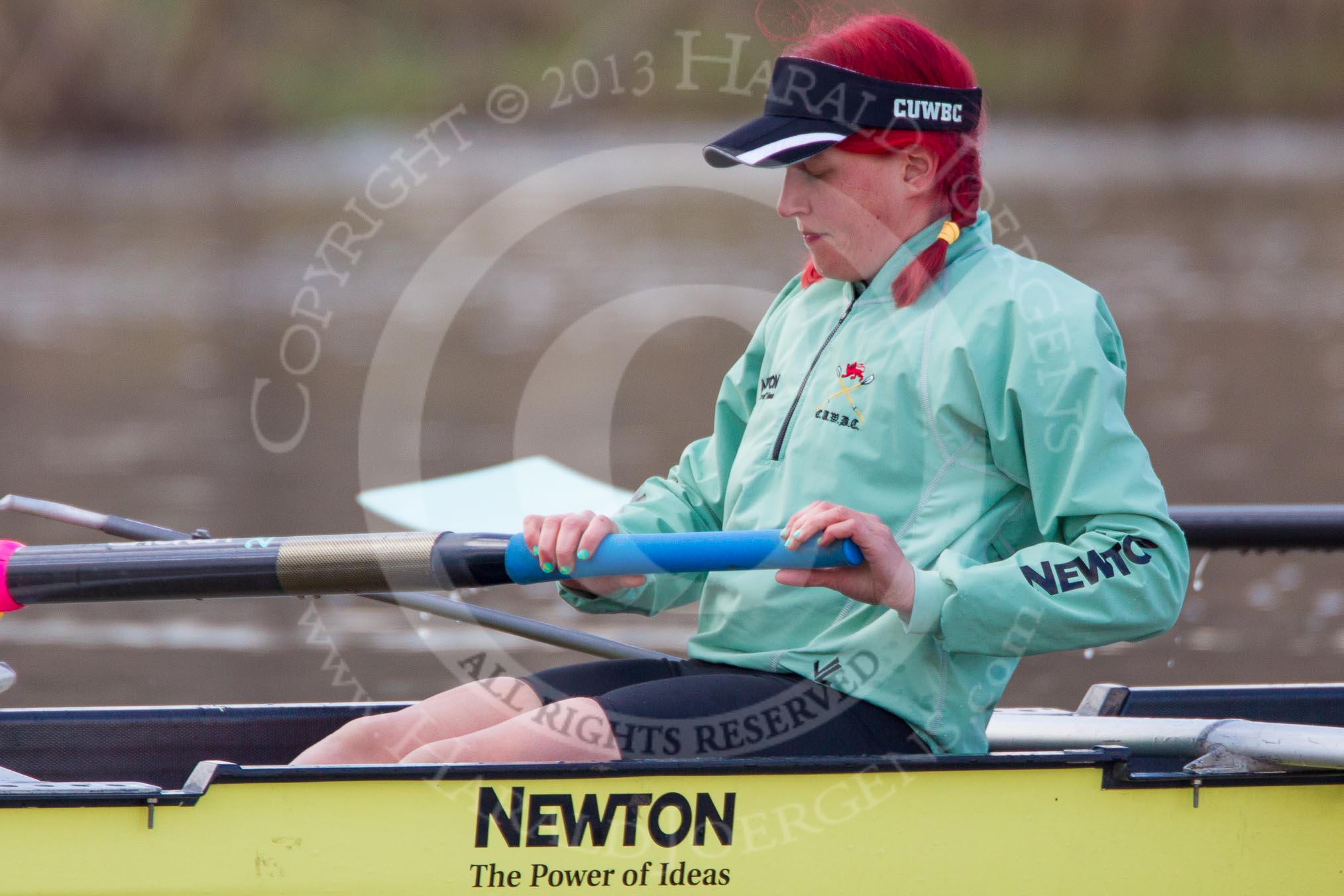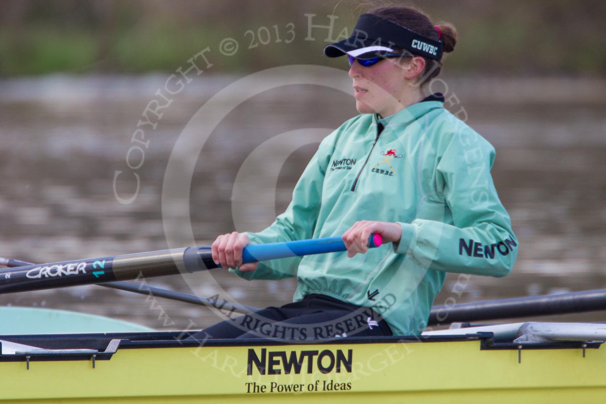 The Boat Race season 2013 - CUWBC training: The CUWBC reserve boat Blondie, in the 7 seat Christine Seeliger.. River Thames near Remenham, Henley-on-Thames, Oxfordshire, United Kingdom, on 19 March 2013 at 15:32, image #34
