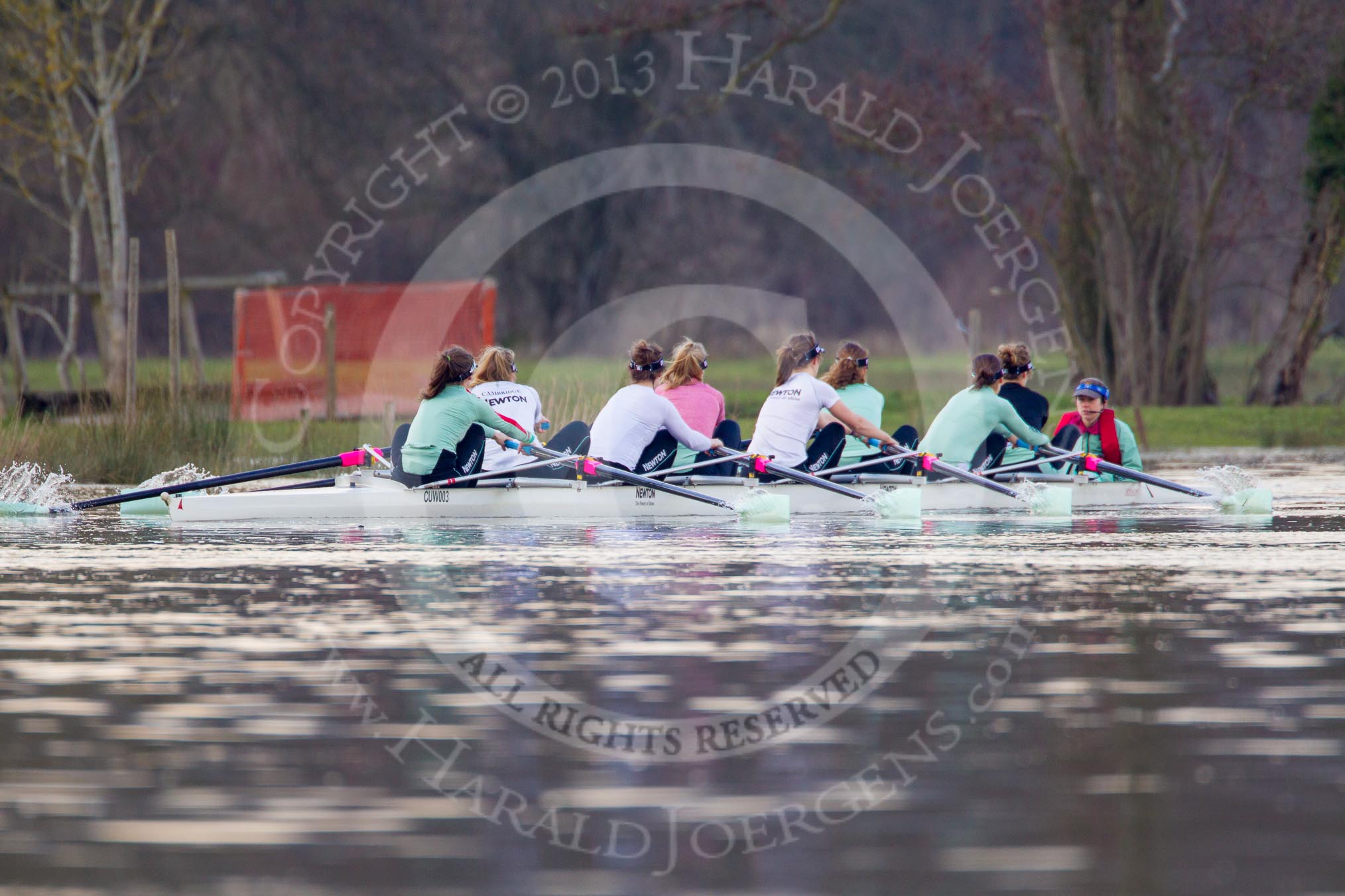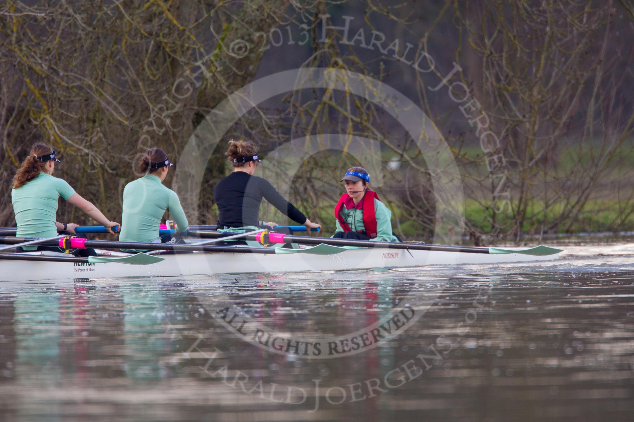 The Boat Race season 2013 - CUWBC training: Coaching for the Newton Women's Boat Race CUWBC's ???.. River Thames near Remenham, Henley-on-Thames, Oxfordshire, United Kingdom, on 19 March 2013 at 15:34, image #50