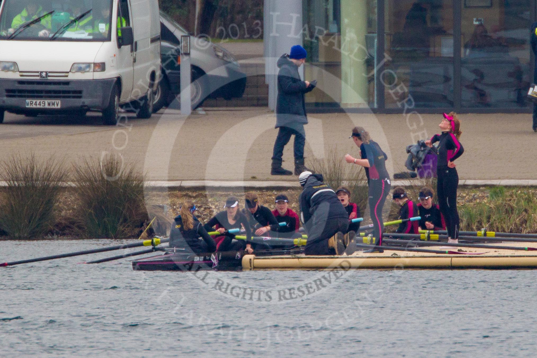 Intercollegiate Women's Race 2013: Downing College, Cambridge, with cox Ruth Wood, stroke Jennifer Joule, 7 Laura-Jane Taylor, 6 Abi Dunn, 5 Josie Hughes, 4 Bridey Addison-Child, 3 Zara Goozee, 2 Philippa Buckley and Katia Smith at bow.