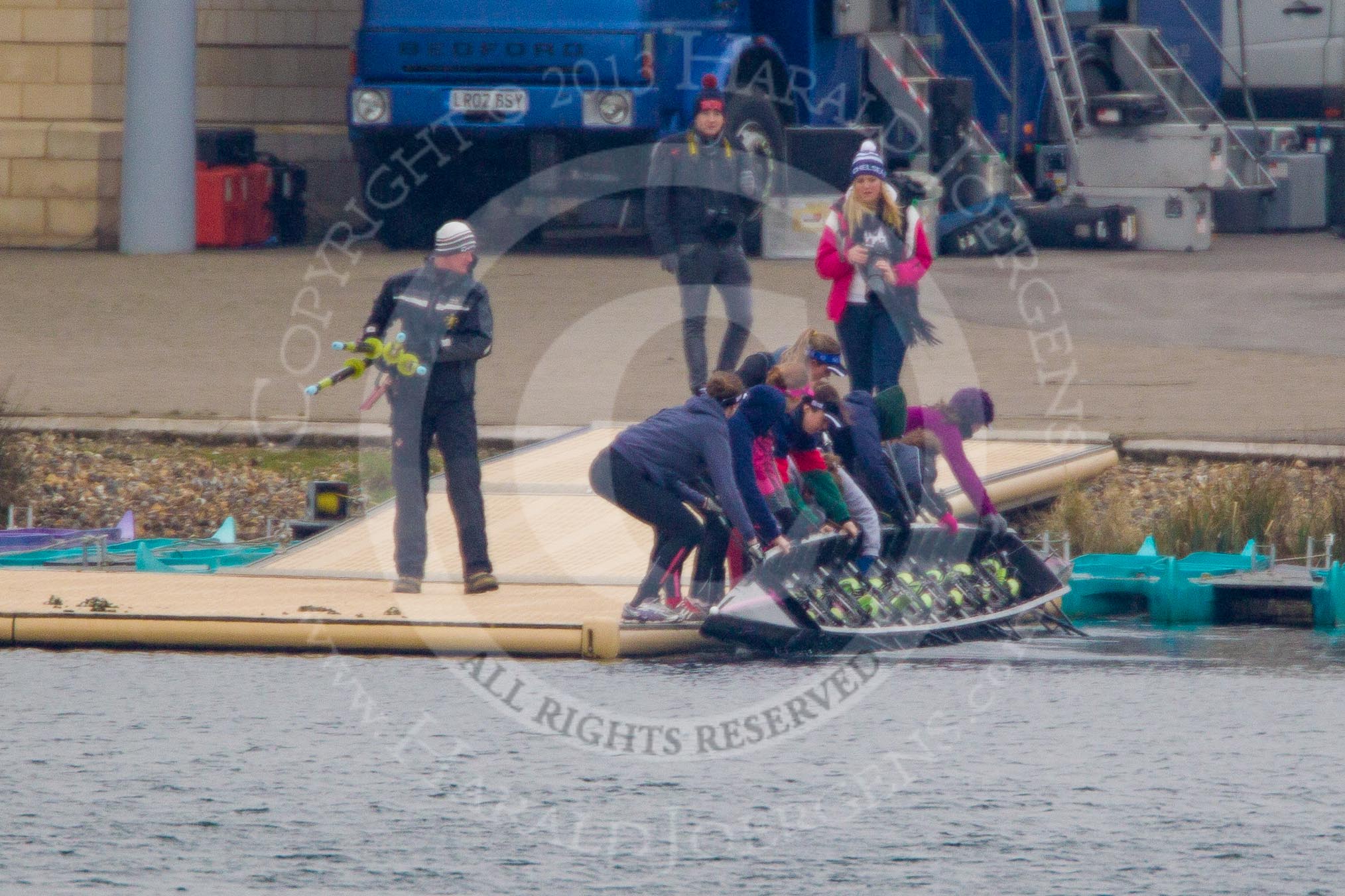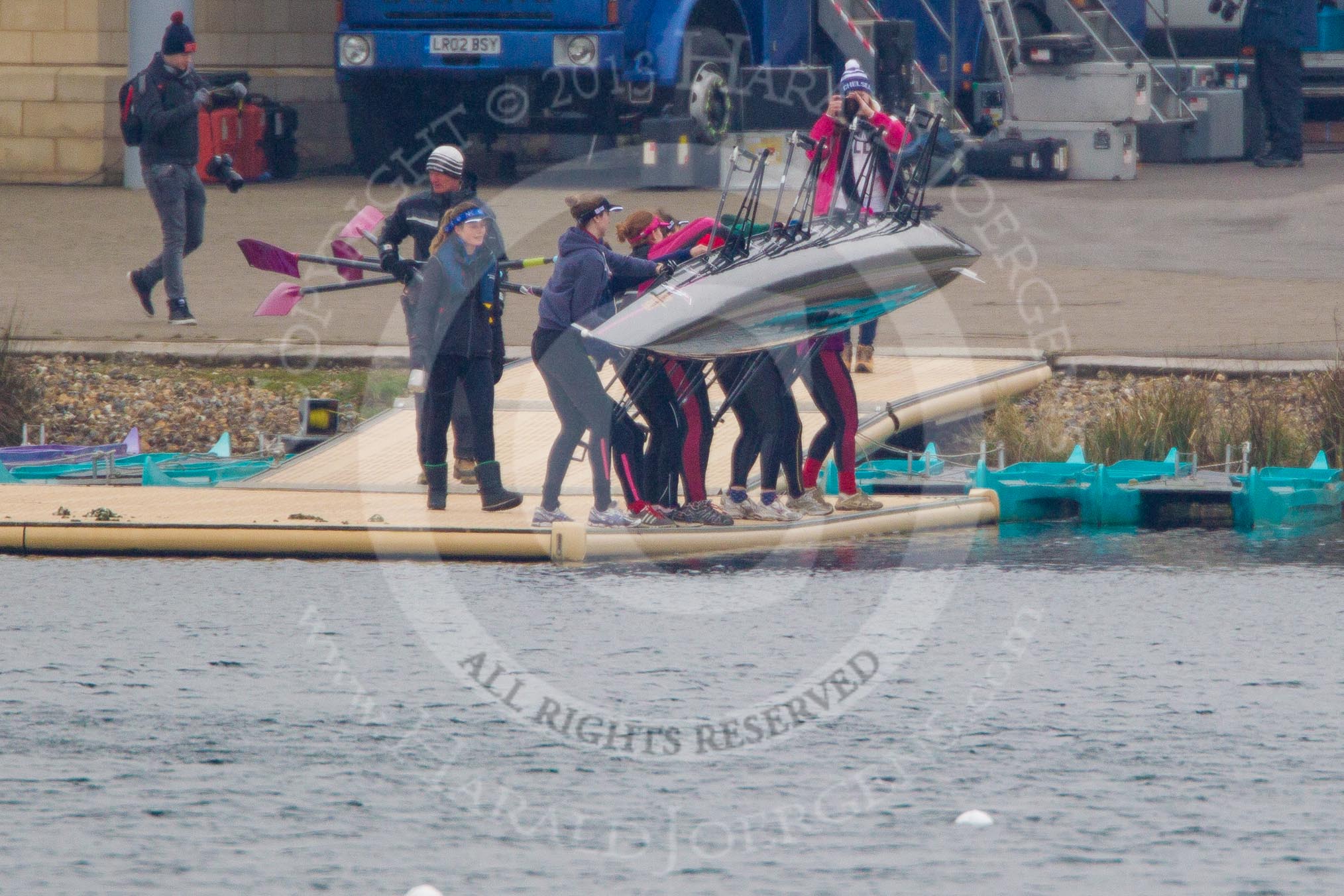 The boats for the intercollegiate women's race getting ready, here Downing College, Cambridge.