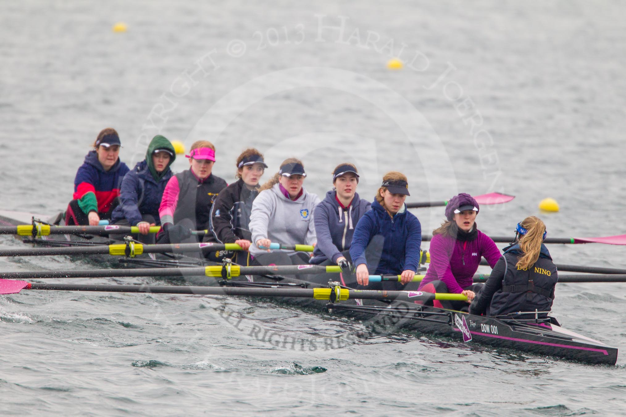 Intercollegiate Women's Race 2013: Downing College, Cambridge, with Abi Dunn in the 5 seat, 7 Laura-Jane Taylor, stroke Jennifer Joule and cox Ruth Wood.