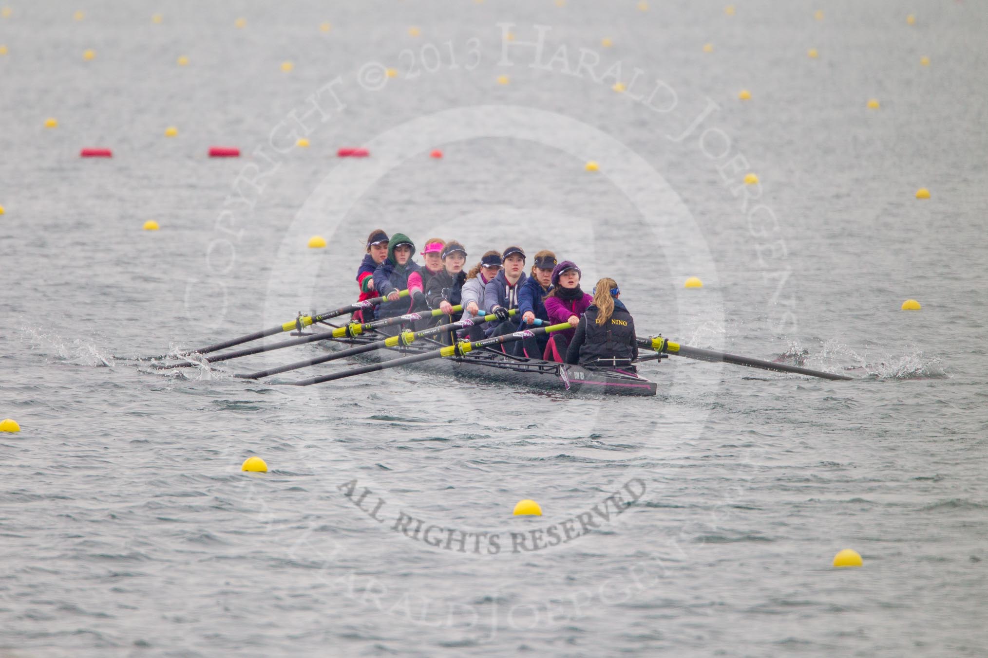 Intercollegiate Women's Race 2013: Downing College, Cambridge, with Katia Smith at bow, 2 Philippa Buckley, 3 Zara Goozee, 4 Bridey Addison-Child, 5 Josie Hughes, 6 Abi Dunn, 7 Laura-Jane Taylor, stroke Jennifer Joule and cox Ruth Wood.