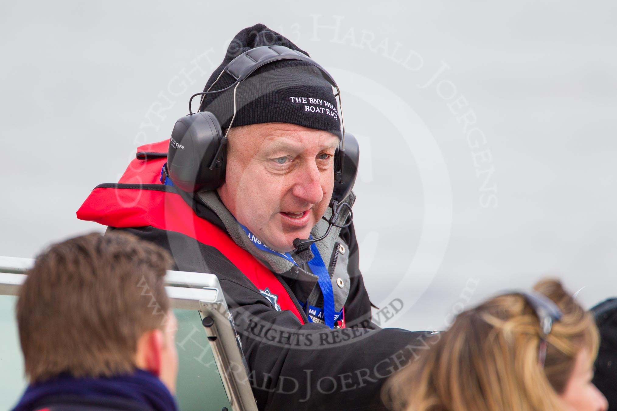 The Boat Race 2013: BBC Floor Manager Chris White on board the "Clare Balding boat" that will follow the 2013 Boat Race..