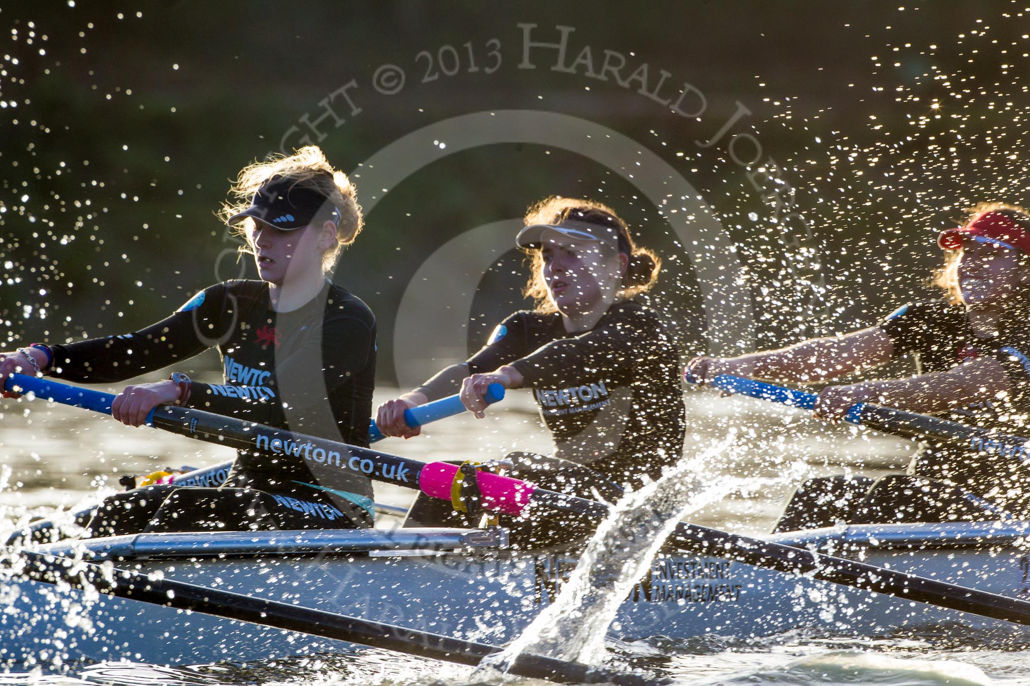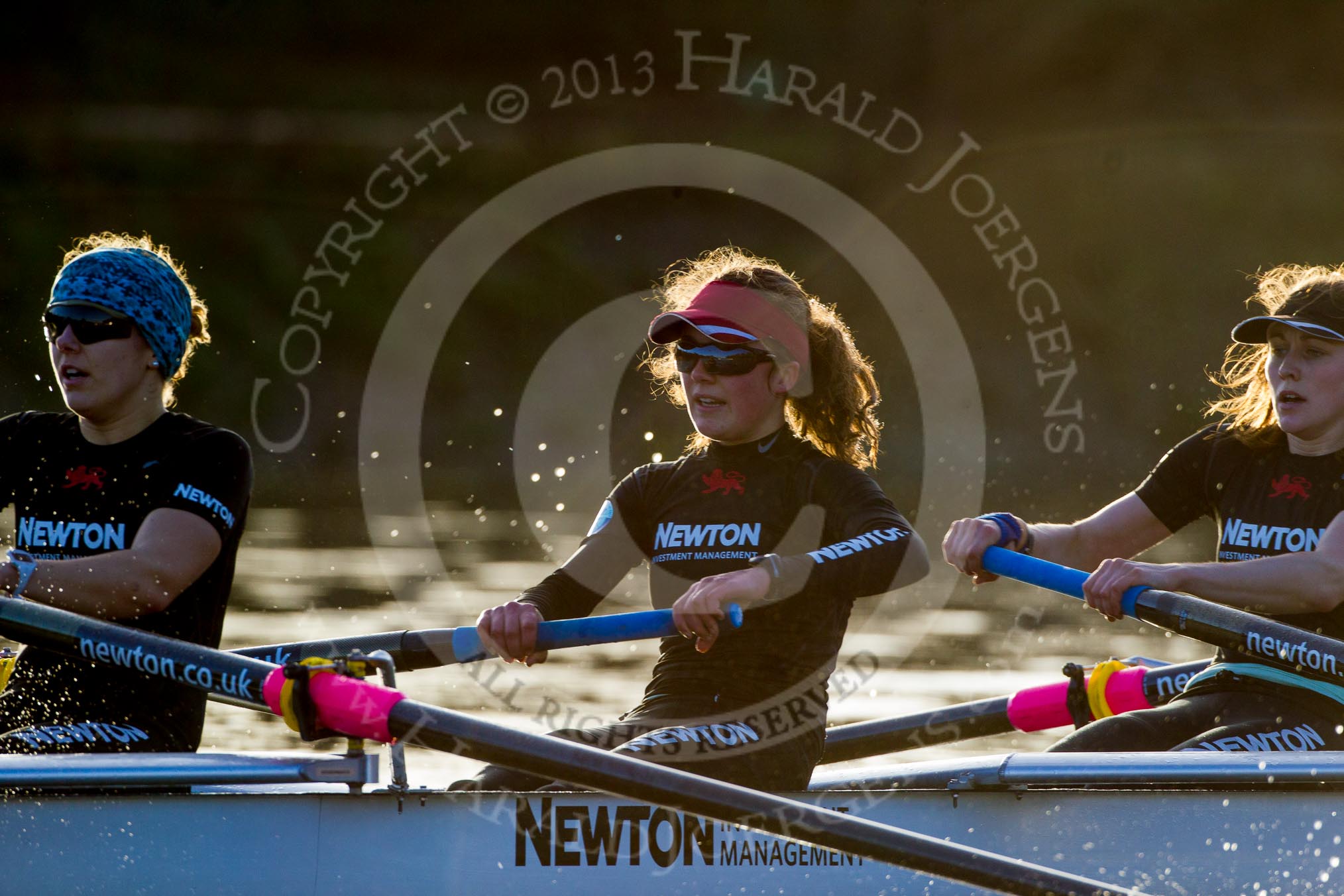 The Boat Race season 2014 - Women's Trial VIIIs(CUWBC, Cambridge): Wink Wink: 4 Sara Lackner, 3 Hannah Roberts, 2 Sarah Crowther.. River Thames between Putney Bridge and Mortlake, London SW15, United Kingdom, on 19 December 2013 at 14:21, image #507
