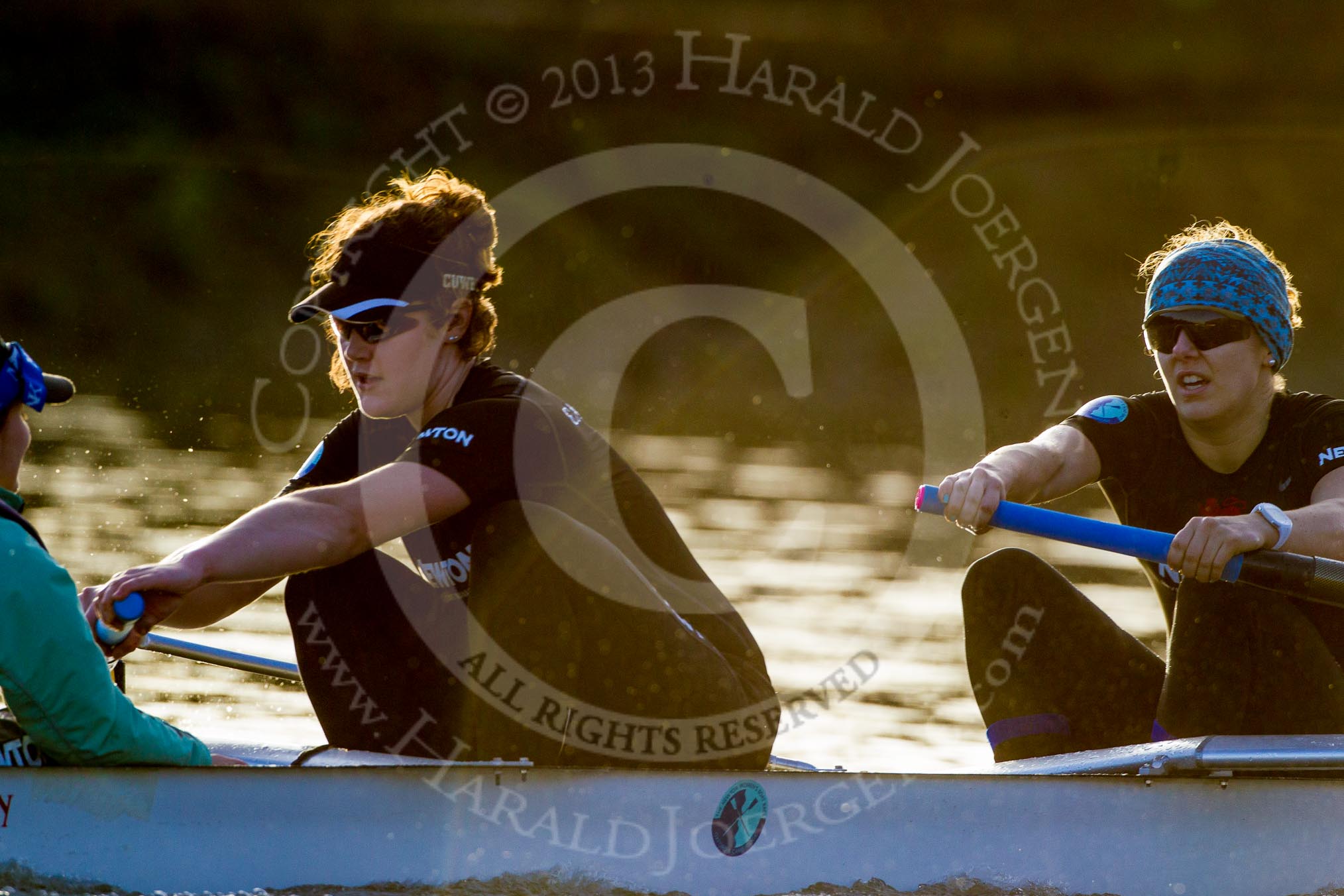 The Boat Race season 2014 - Women's Trial VIIIs(CUWBC, Cambridge): Wink Wink: 6 Fiona Macklin, 5 Caroline Reid.. River Thames between Putney Bridge and Mortlake, London SW15, United Kingdom, on 19 December 2013 at 14:21, image #510