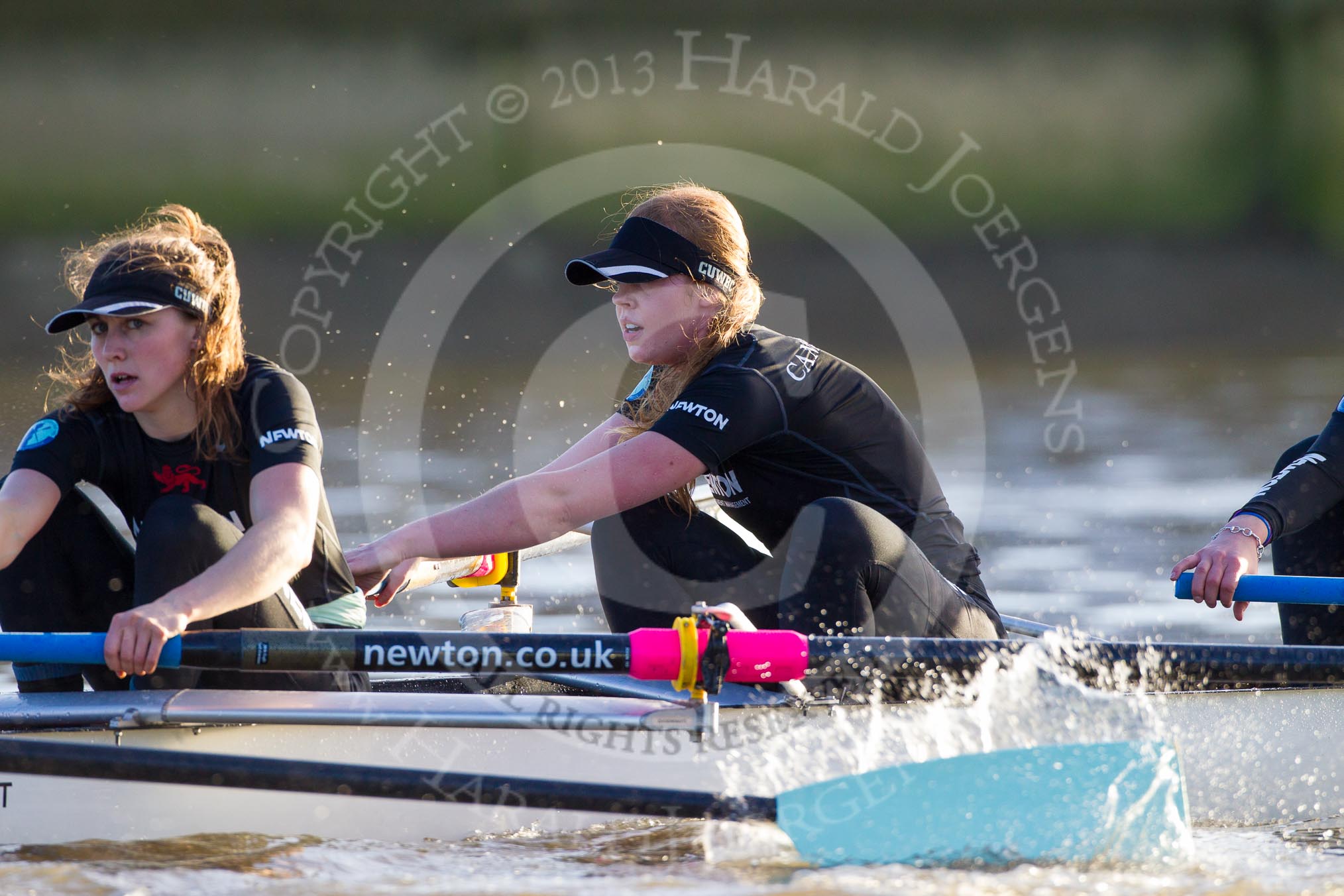 The Boat Race season 2014 - Women's Trial VIIIs(CUWBC, Cambridge): Wink Wink: 5 Caroline Reid, 4 Sara Lackner.. River Thames between Putney Bridge and Mortlake, London SW15, United Kingdom, on 19 December 2013 at 14:19, image #488