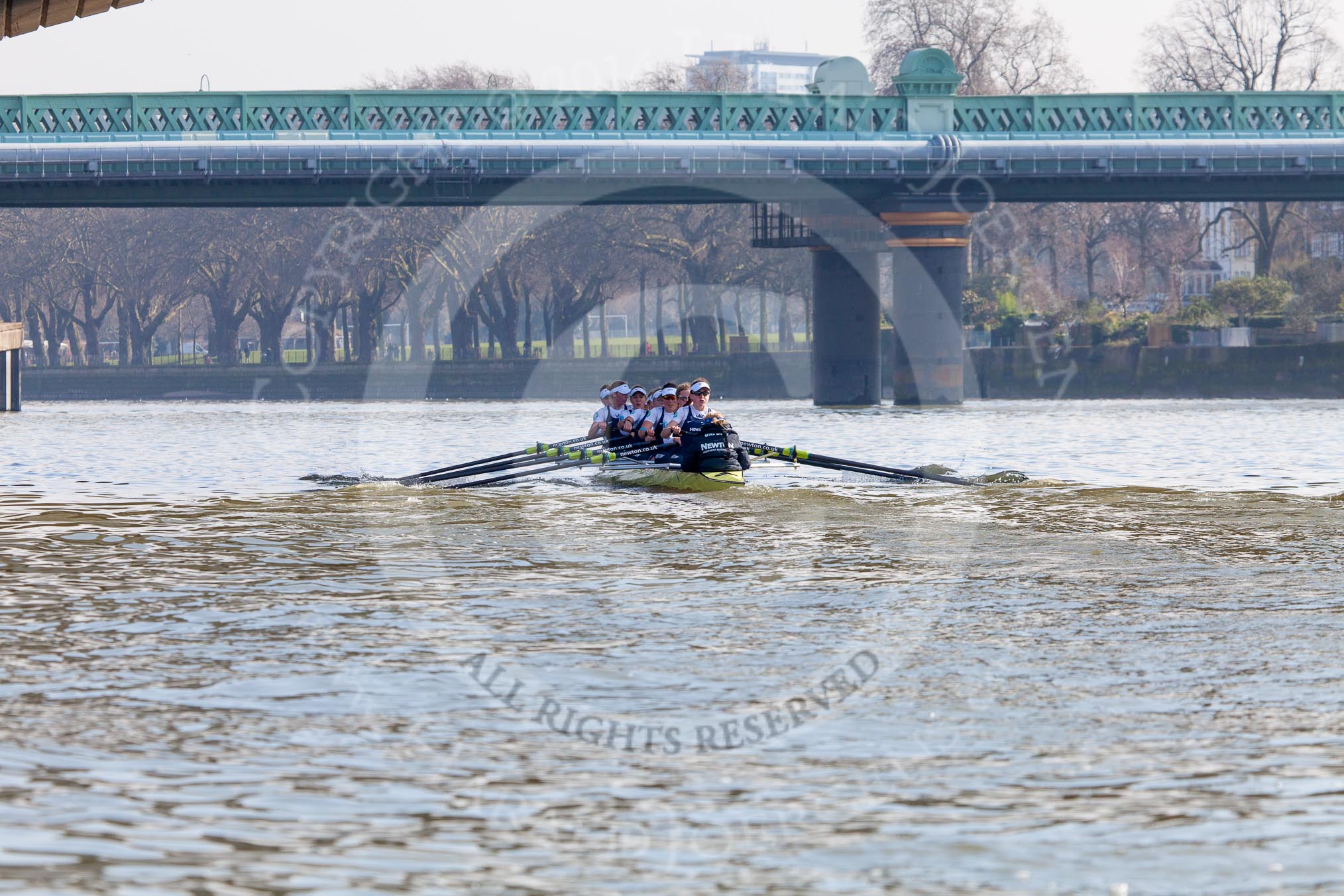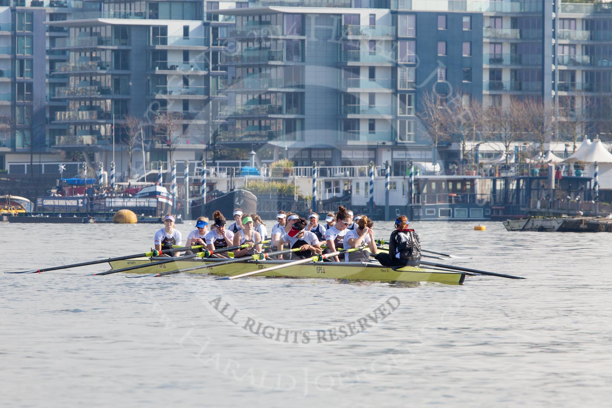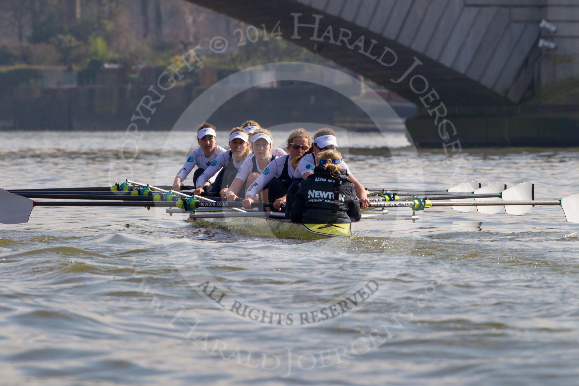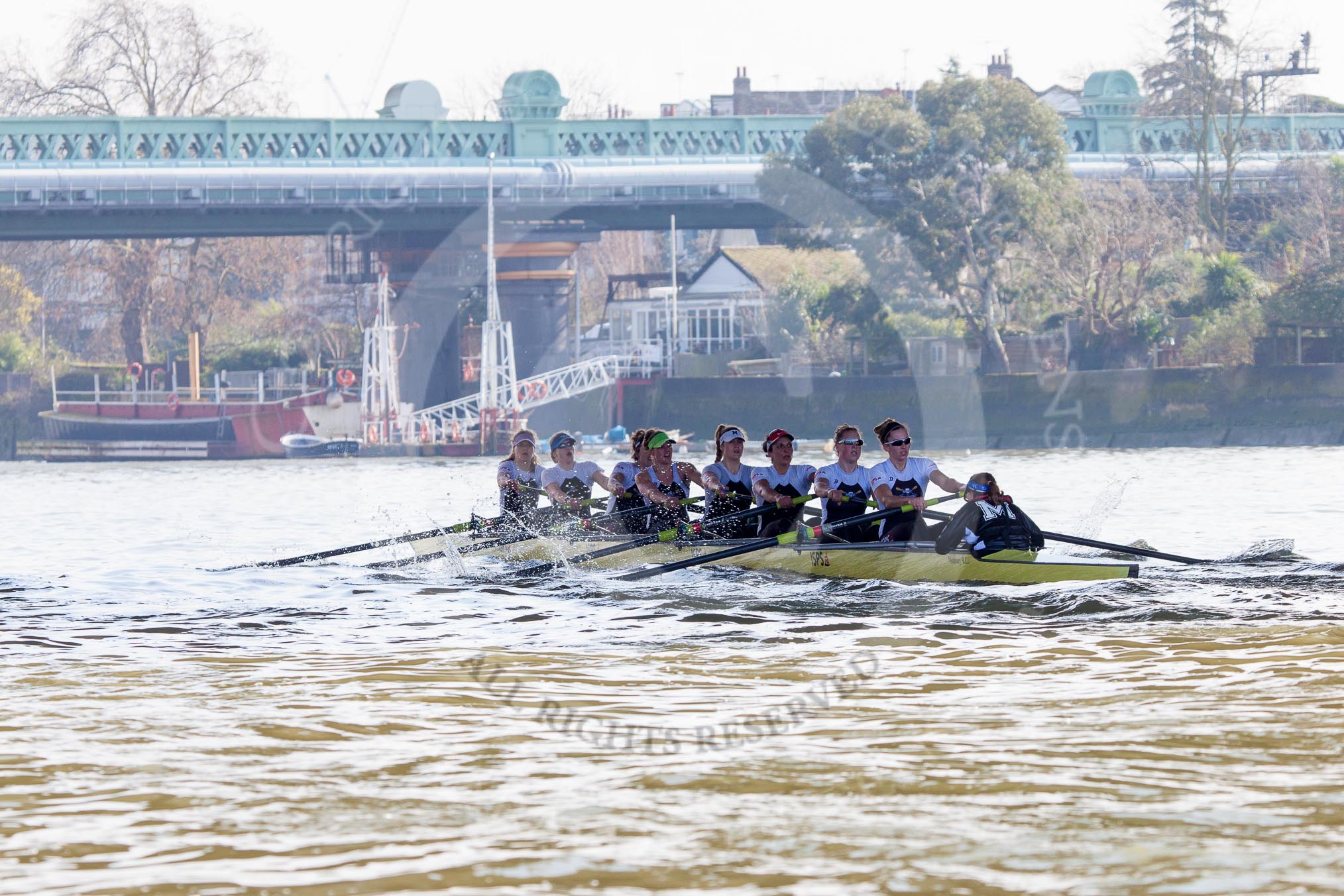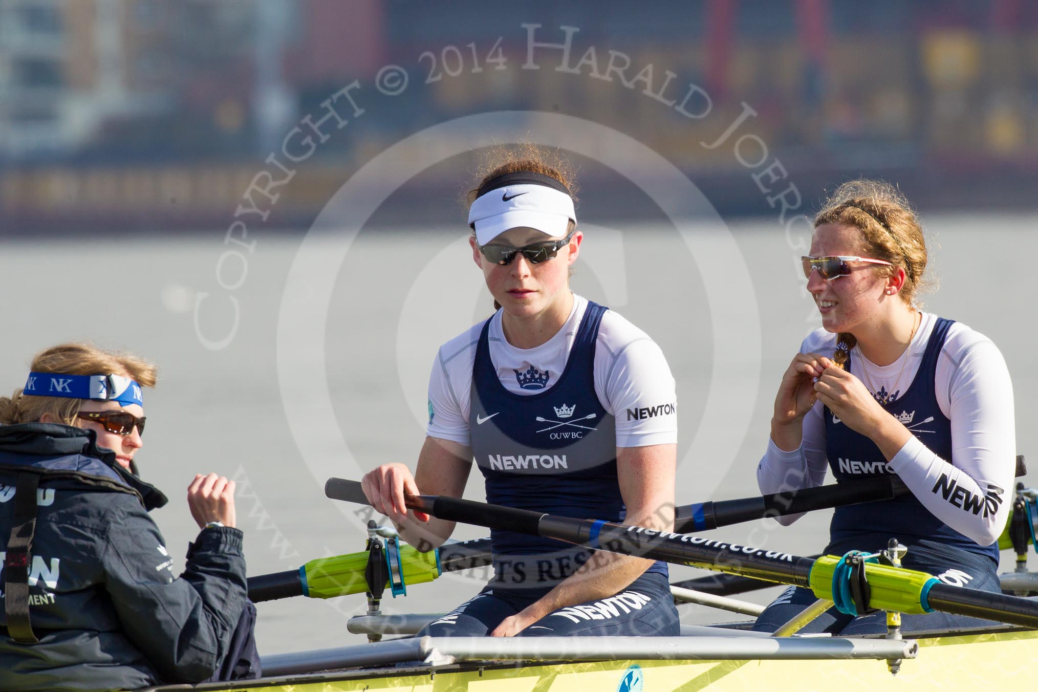 The Boat Race season 2014 - fixture OUWBC vs Molesey BC: The OUWBC Eight: Cox Erin Wysocki-Jones, stroke Laura Savarese and 7 Anastasia Chitty..