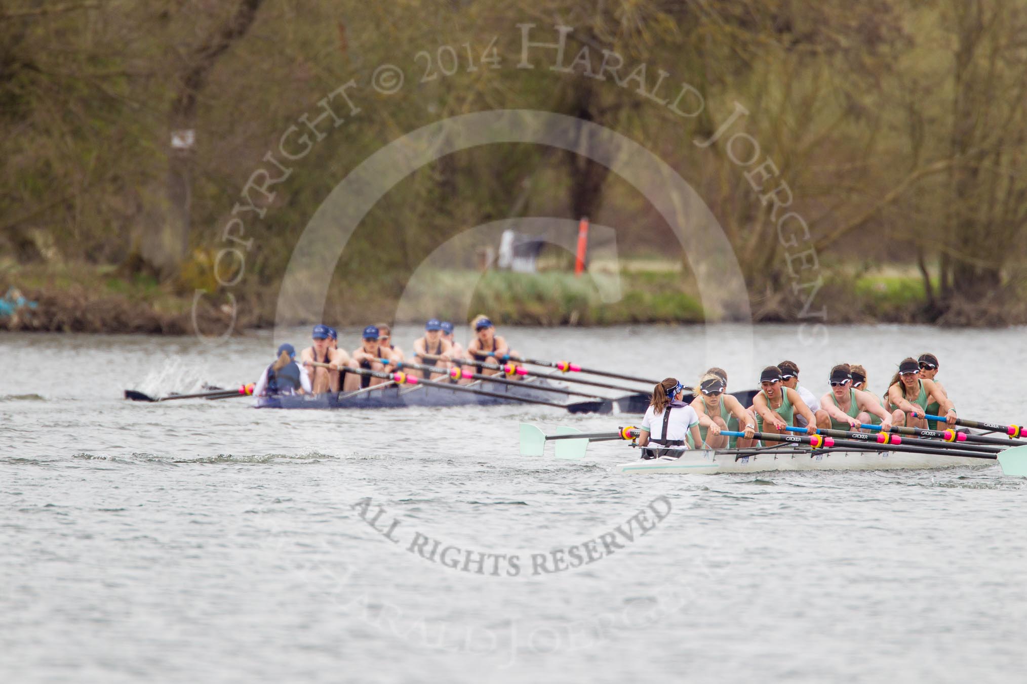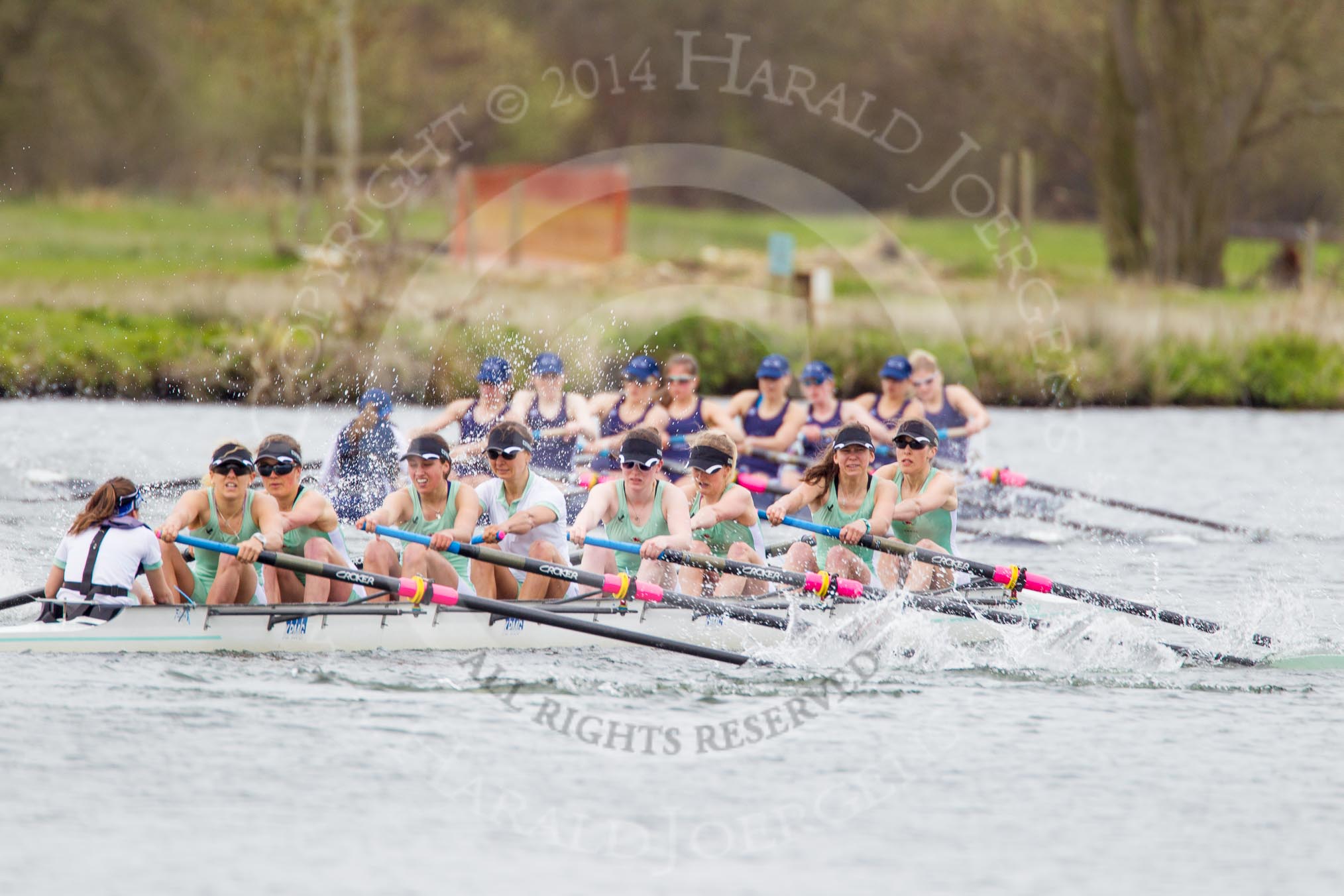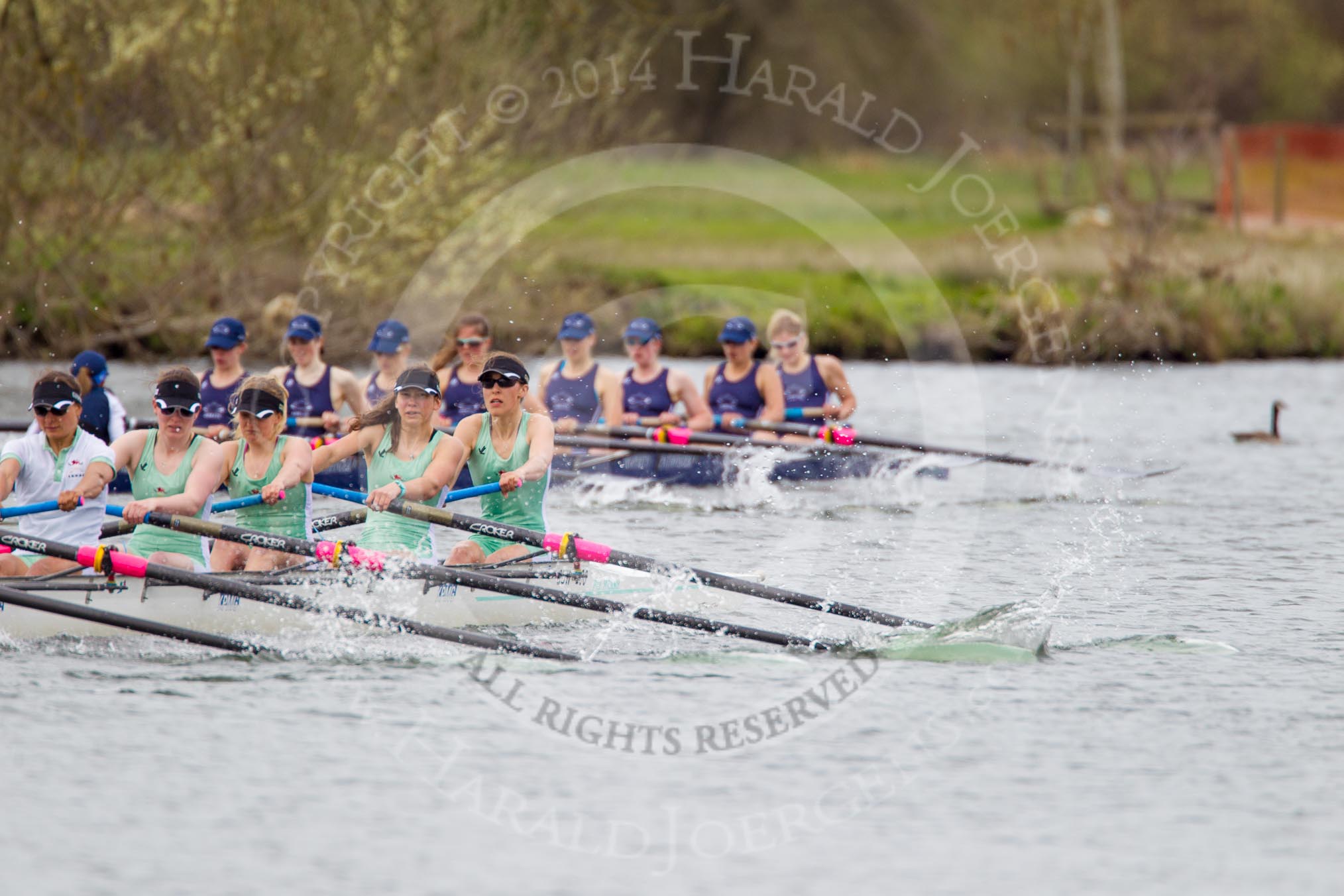 The Women's Boat Race and Henley Boat Races 2014: The Lightweight Women's Boat Race - OUWLRC are still in the lead, but the CUWBC Lightweights are getting closer.. River Thames, Henley-on-Thames, Buckinghamshire, United Kingdom, on 30 March 2014 at 14:50, image #246