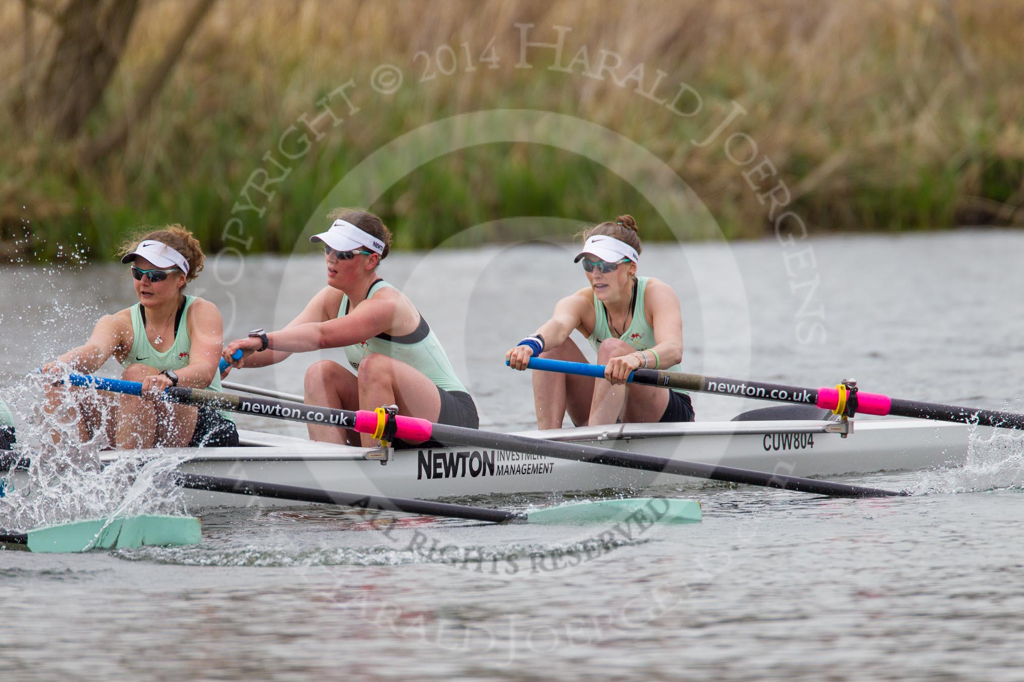 The Women's Boat Race and Henley Boat Races 2014: The Newton Women's Boat Race - in the Cambridge boat 3 seat Holly Game, 2 Kate Ashley, bow Caroline Reid.. River Thames, Henley-on-Thames, Buckinghamshire, United Kingdom, on 30 March 2014 at 15:15, image #303