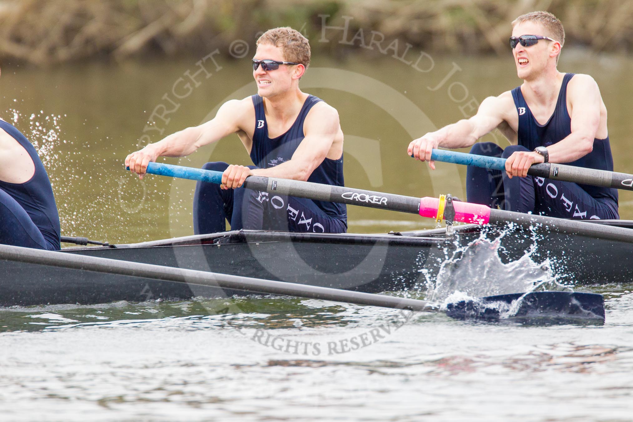 The Women's Boat Race and Henley Boat Races 2014: The Lightweight Men's Boat Race - OULRC vs CULRC. In the Oxford boat 3 seat Marcus Henglein, 2 David Zimmer.. River Thames, Henley-on-Thames, Buckinghamshire, United Kingdom, on 30 March 2014 at 15:40, image #388