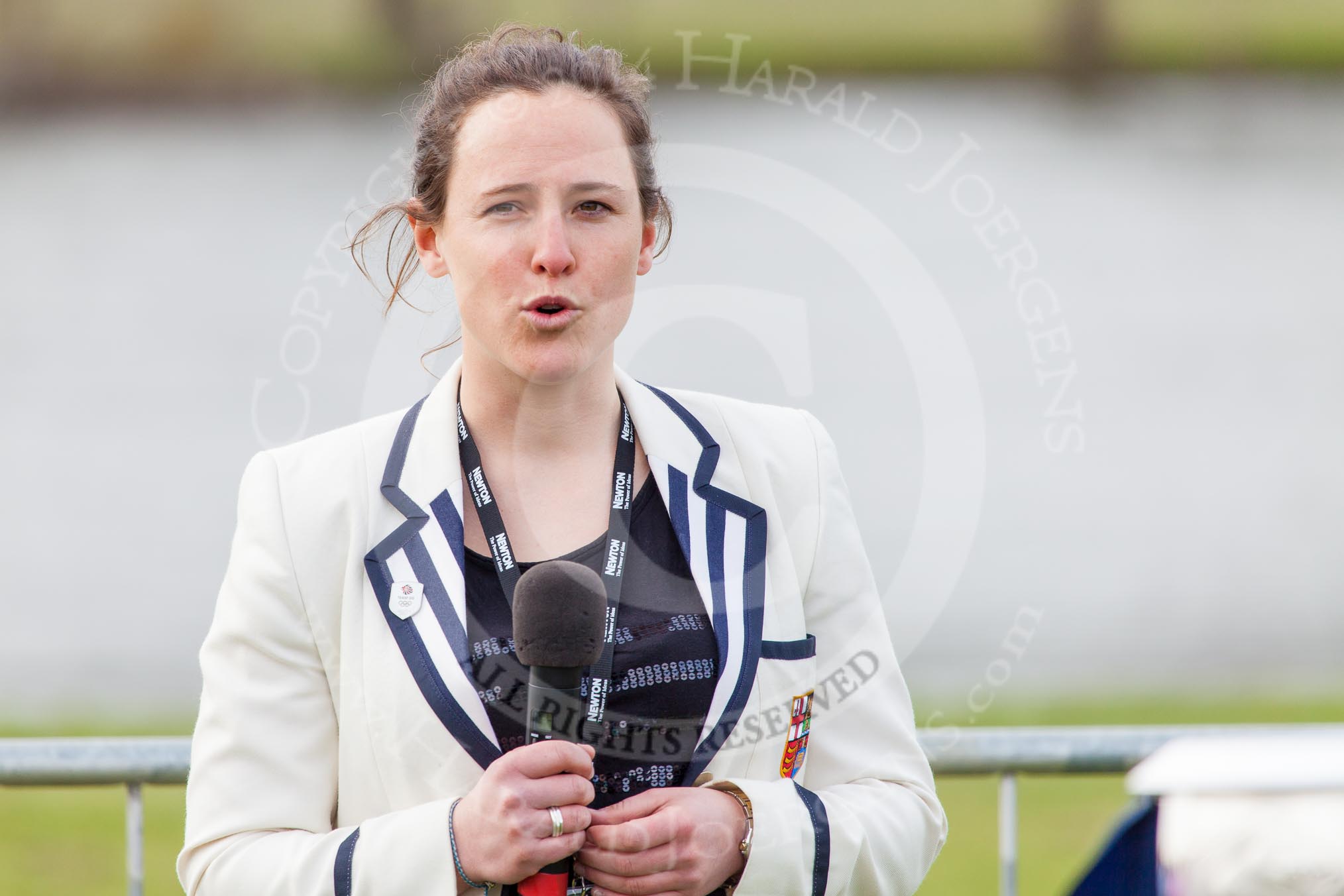 The Women's Boat Race and Henley Boat Races 2014: Sophie Hosking MBE, gold medalist at the 2012 Olympics lightweight double scullts, about to present the trophies..