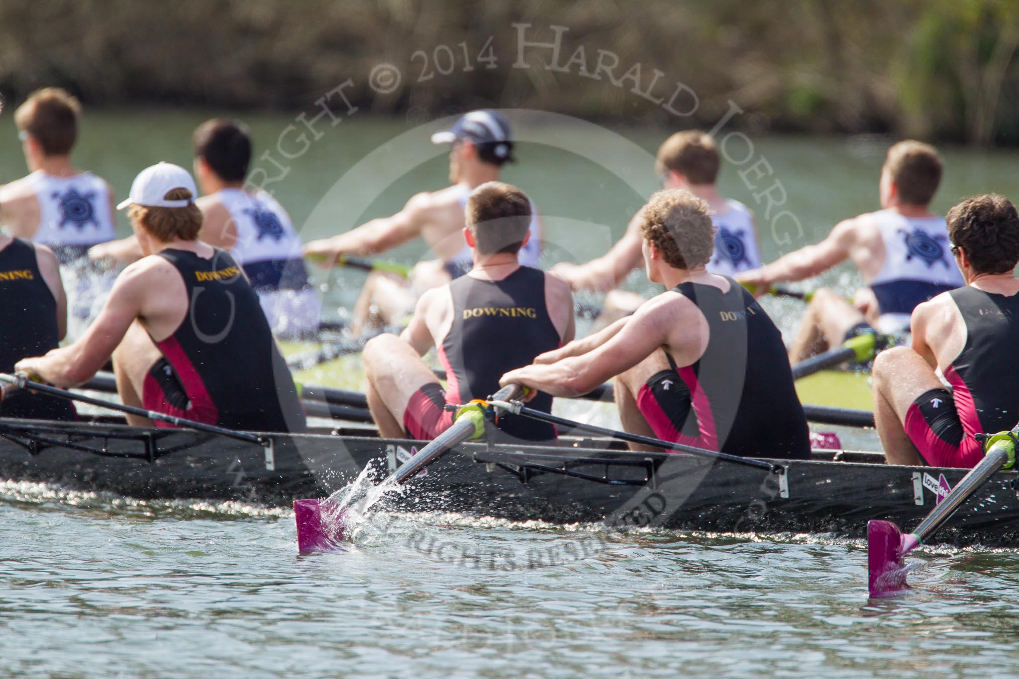 The Women's Boat Race and Henley Boat Races 2014: The Intercollegiate men's race. Oriel College (Oxford) and Downing College (Cambridge, on the left) are still close together.. River Thames, Henley-on-Thames, Buckinghamshire, United Kingdom, on 30 March 2014 at 13:51, image #91