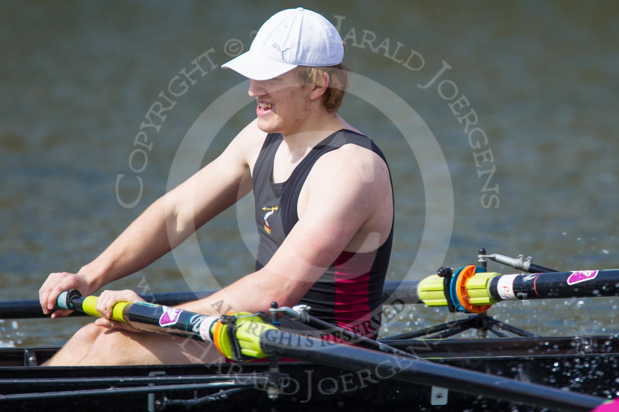 The Women's Boat Race and Henley Boat Races 2014: The Intercollegiate men's race. In the Downing College (Cambridge) boat in the 2 seat Thomas Nickols.. River Thames, Henley-on-Thames, Buckinghamshire, United Kingdom, on 30 March 2014 at 13:52, image #95