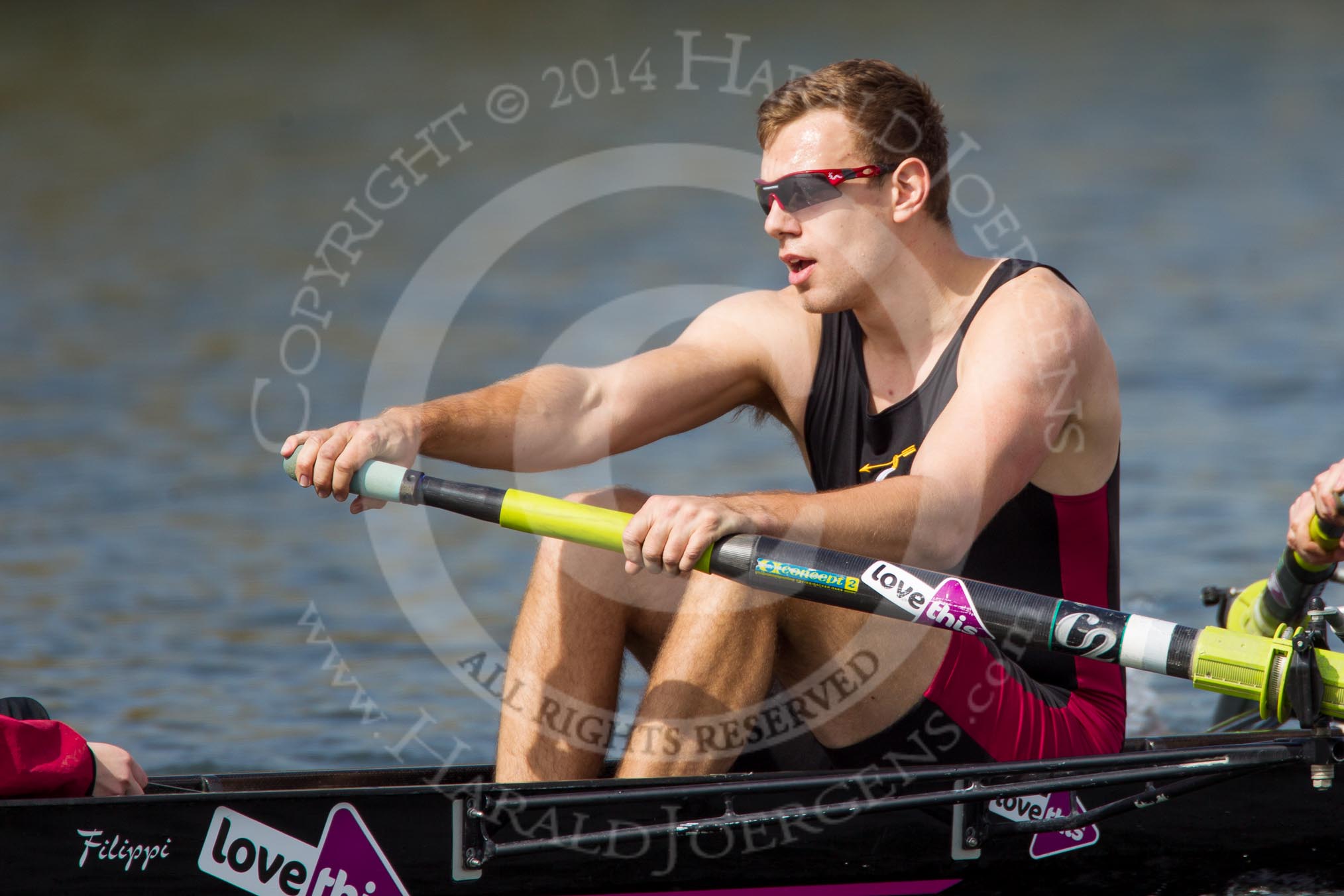 The Women's Boat Race and Henley Boat Races 2014: The Intercollegiate men's race. In the Downing College (Cambridge) boat stroke Michael Whetnall.. River Thames, Henley-on-Thames, Buckinghamshire, United Kingdom, on 30 March 2014 at 13:52, image #100