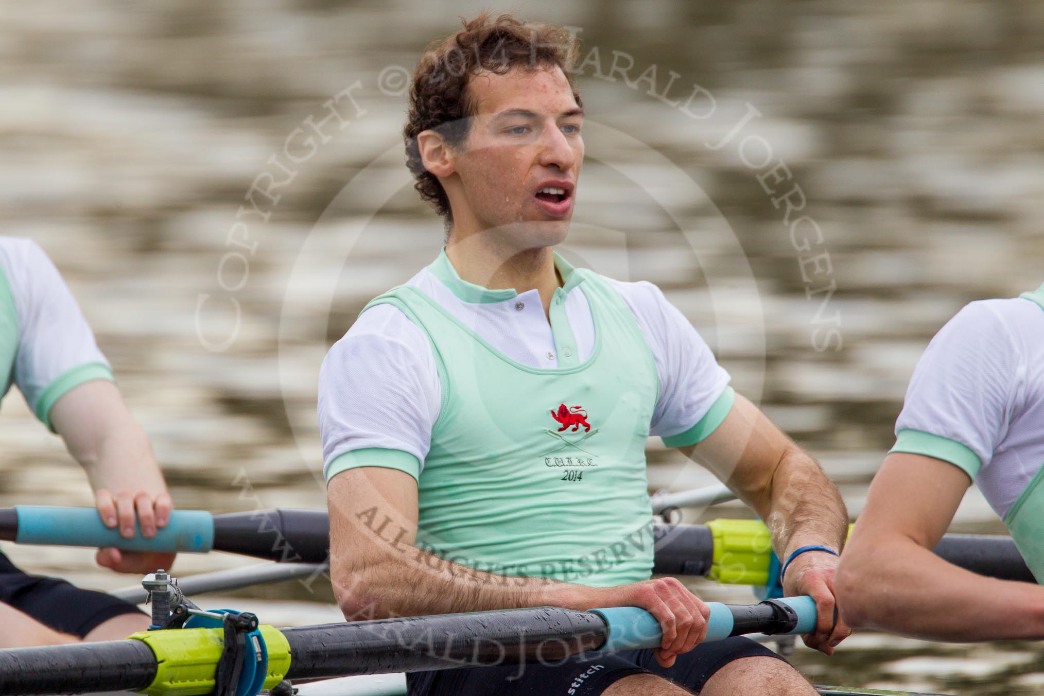 The Women's Boat Race and Henley Boat Races 2014: After the Lightweight Men's Boat Race - the Cambridge Eight is rowing back to Henley. Here 2 seat Emanuel Malek..