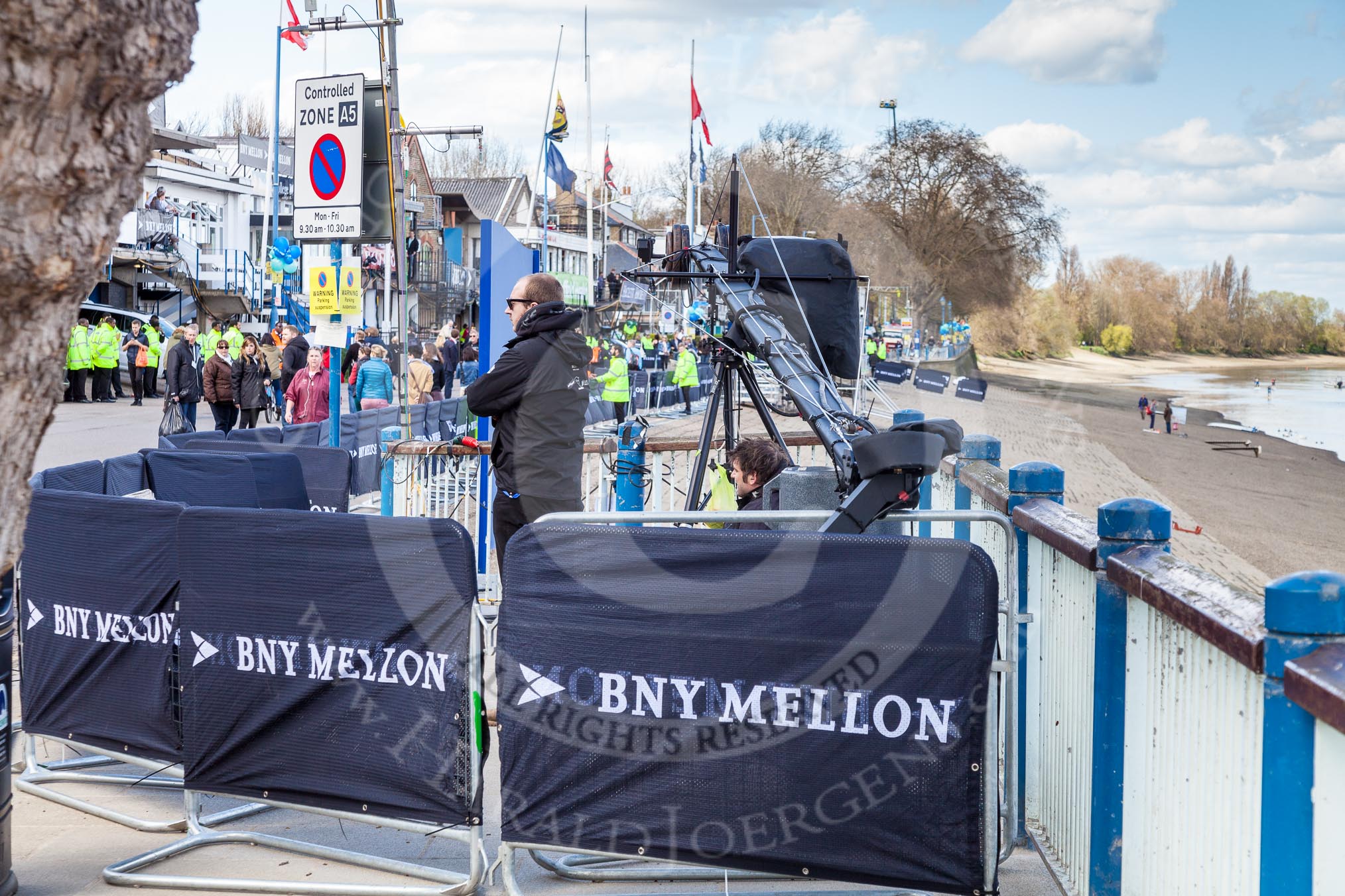 The Boat Race season 2015 - Newton Women's Boat Race: Artist Nick Botting painting a Women's Boat Race scene.