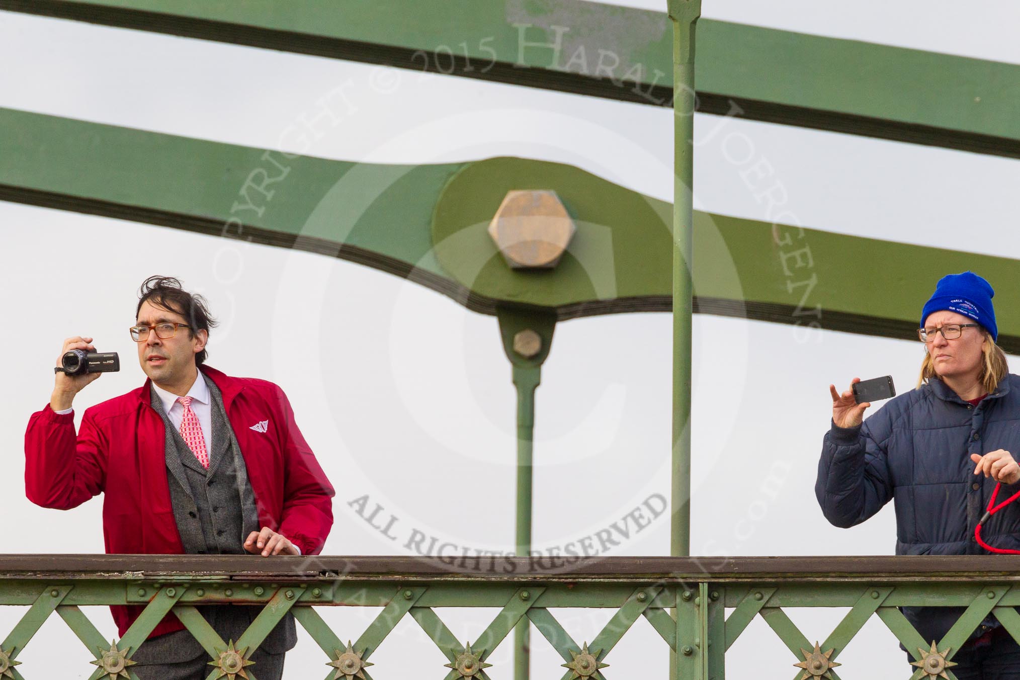 The Boat Race season 2016 - Women's Boat Race Trial Eights (OUWBC, Oxford): Friends and families on Hammersmith Bridge.