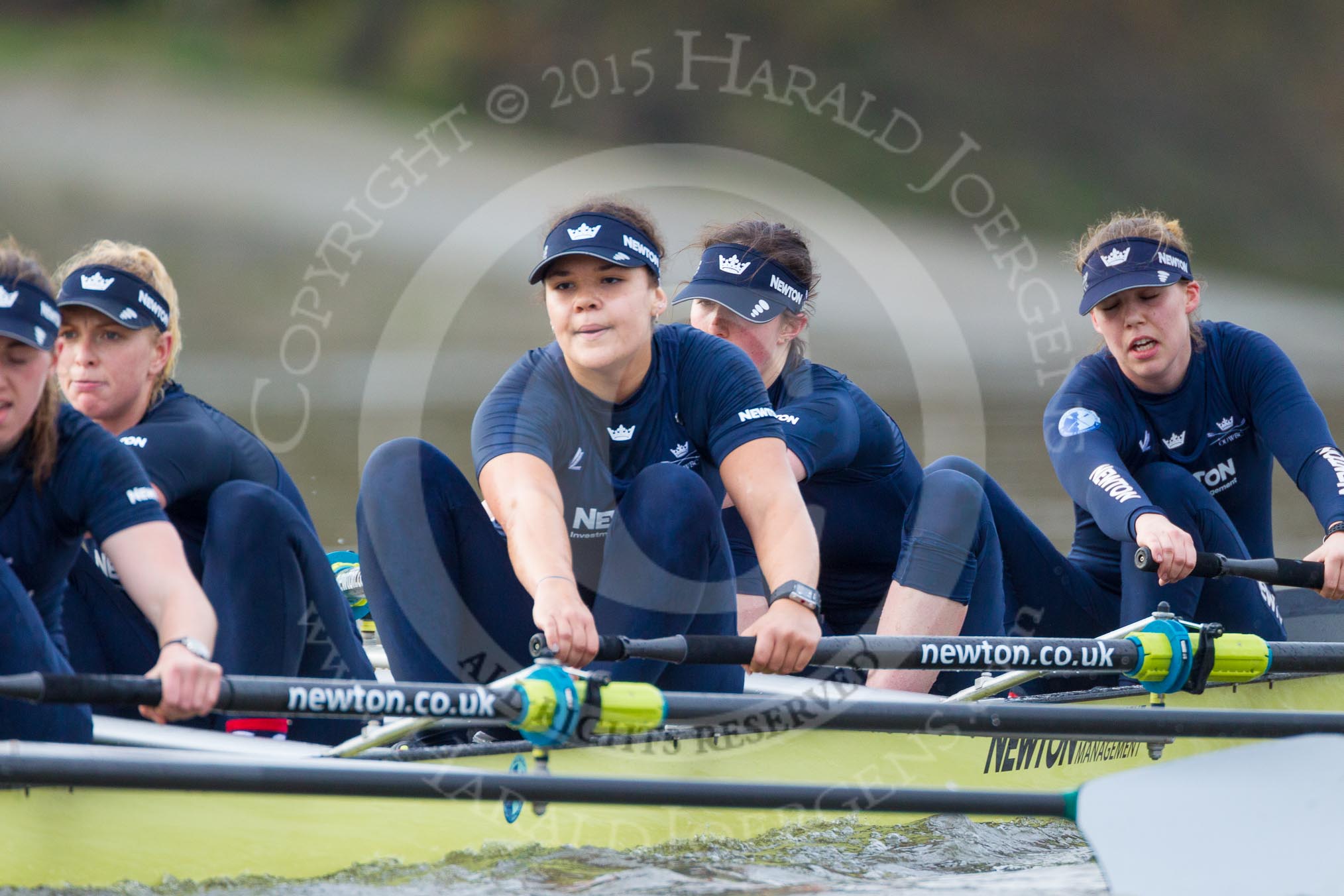 The Boat Race season 2016 - Women's Boat Race Trial Eights (OUWBC, Oxford): "Charybdis" , here 5-Ruth Siddorn, 4-Emma Spruce, 3-Lara Pysden.