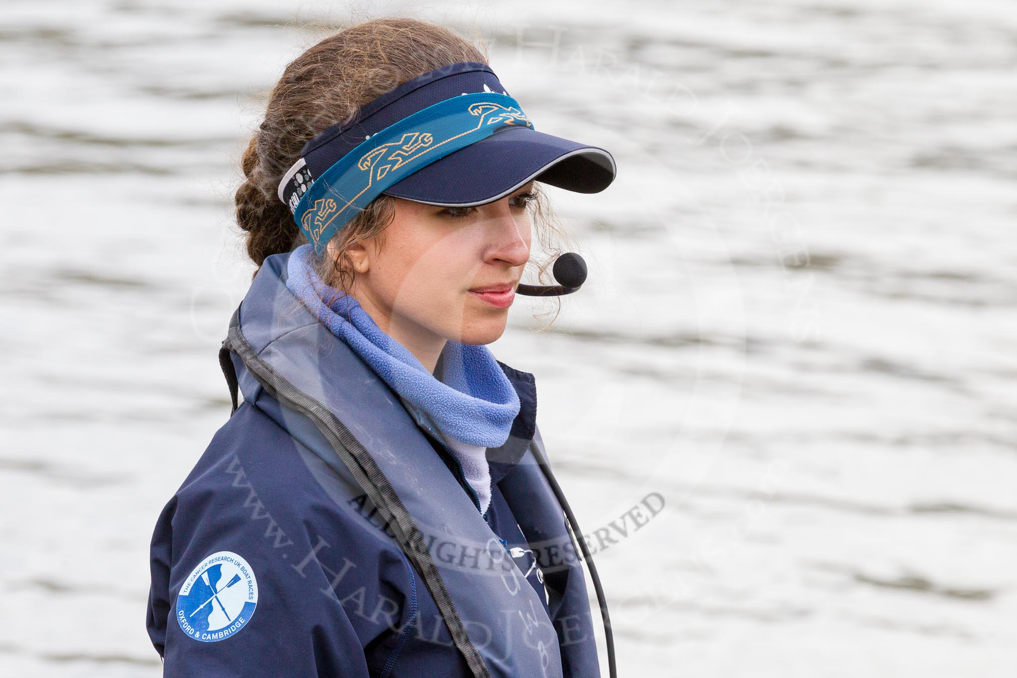 The Cancer Research UK Boat Race season 2017 - Women's Boat Race Fixture OUWBC vs Molesey BC: OUWBC cox Eleanor Shearer. River Thames between Putney Bridge and Mortlake, London SW15, United Kingdom, on 19 March 2017 at 15:19, image #8