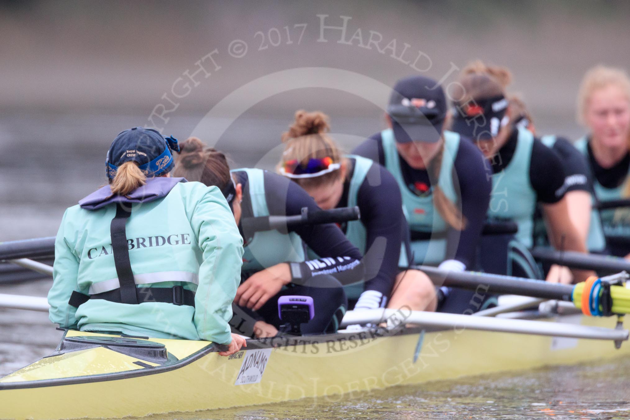 The Boat Race season 2018 - Women's Boat Race Trial Eights (CUWBC, Cambridge): A rare photo of a cox not shot from behind - Sophie Shapter on Expecto Patronum.