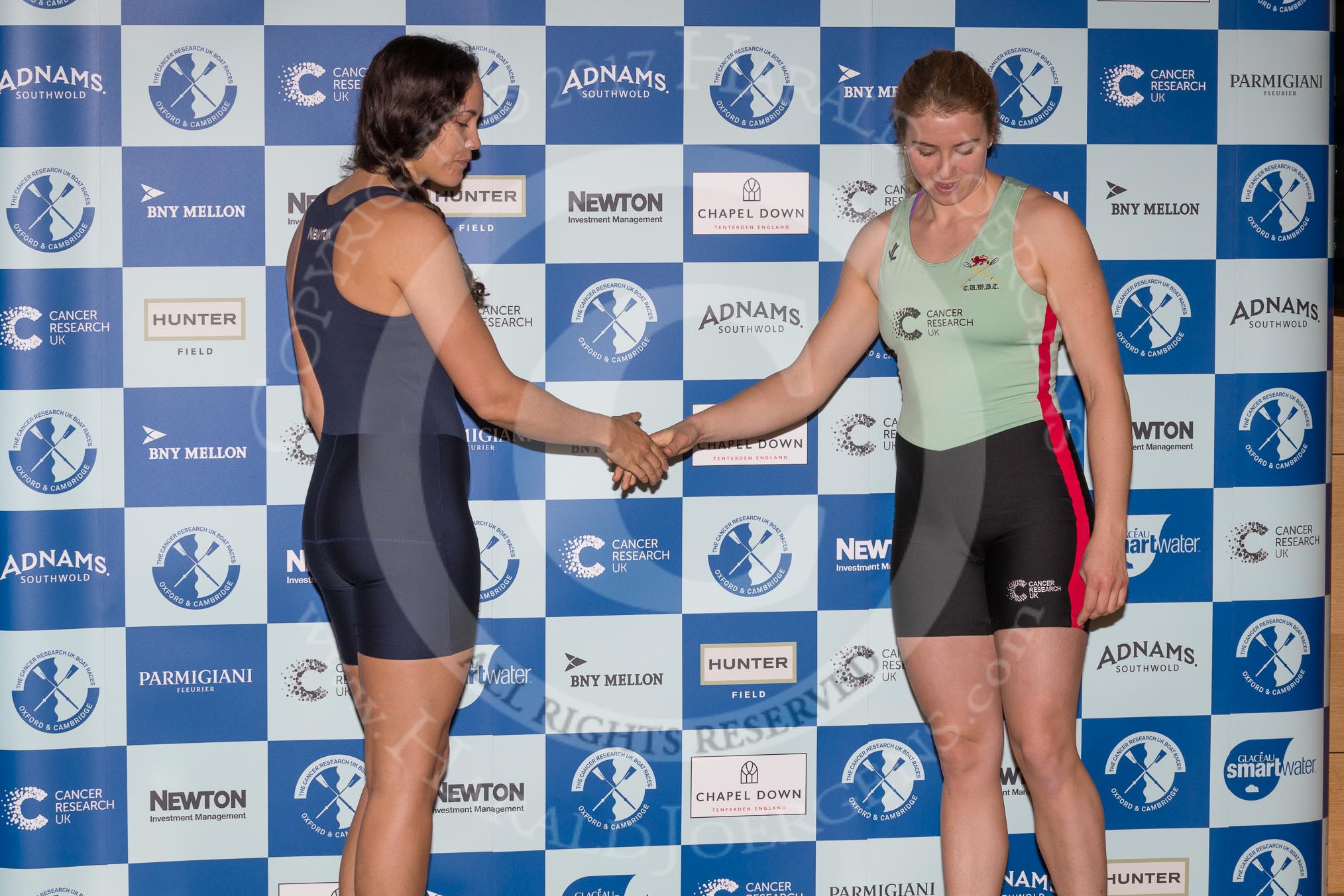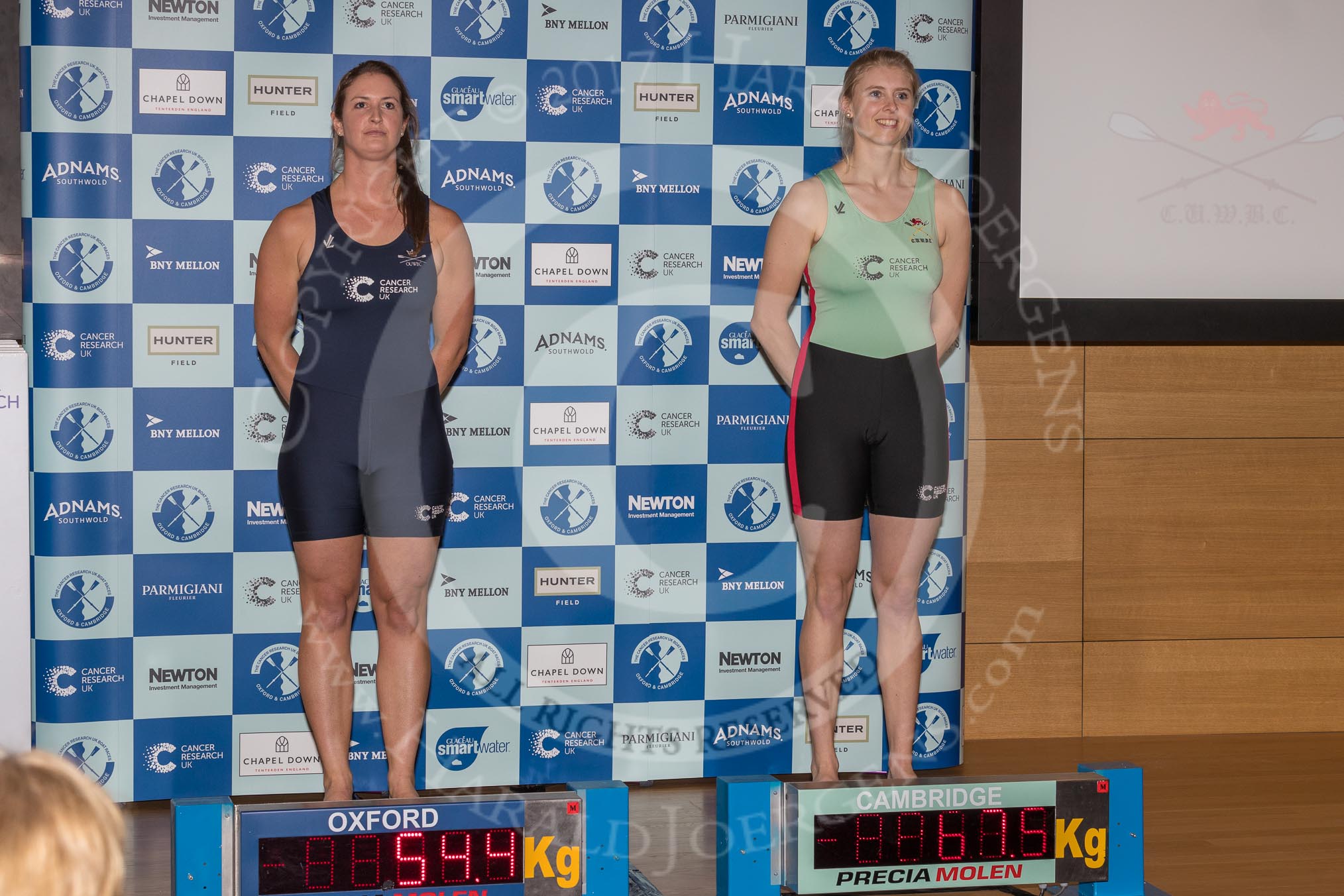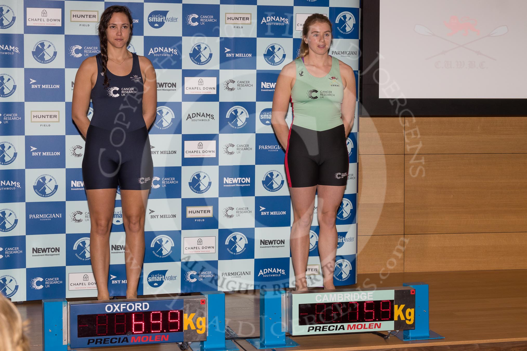 The Boat Race season 2017 - Crew Announcement and Weigh-In: In the 5 seat Harriet Austin (OUWBC) and Holly Hill (CUWBC).