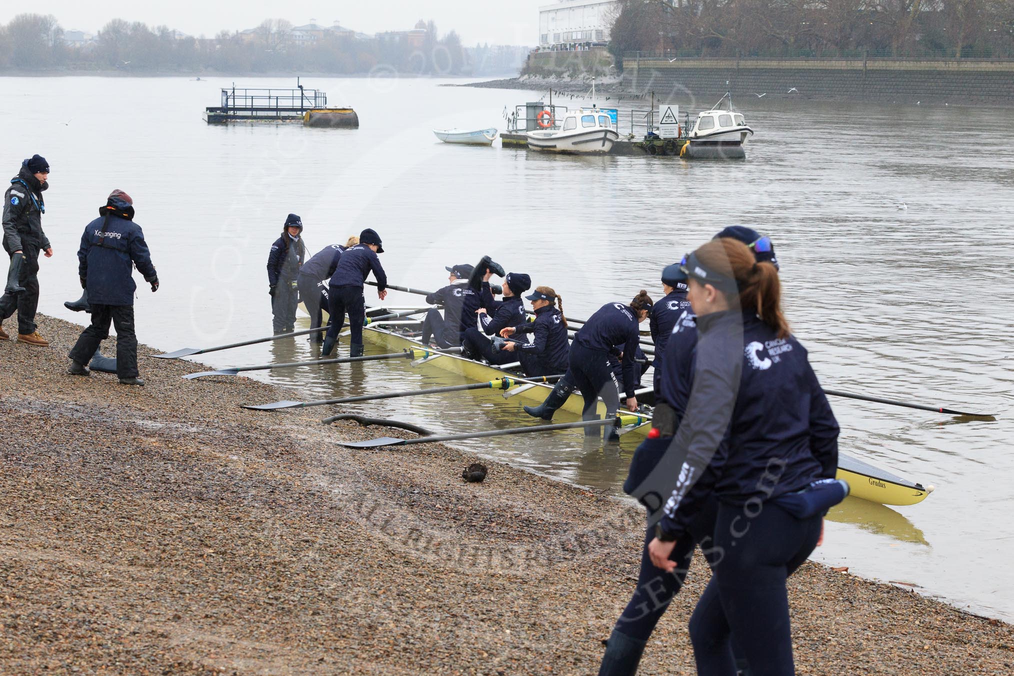 The Boat Race season 2018 - Women's Boat Race Trial Eights (OUWBC, Oxford): "Coursing River" getting ready for the race.