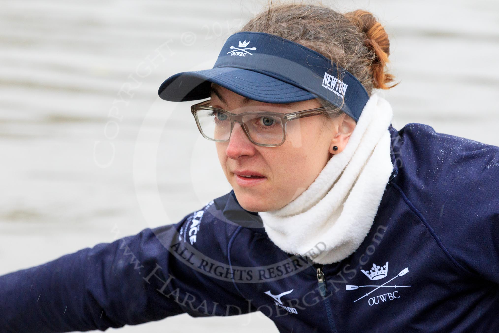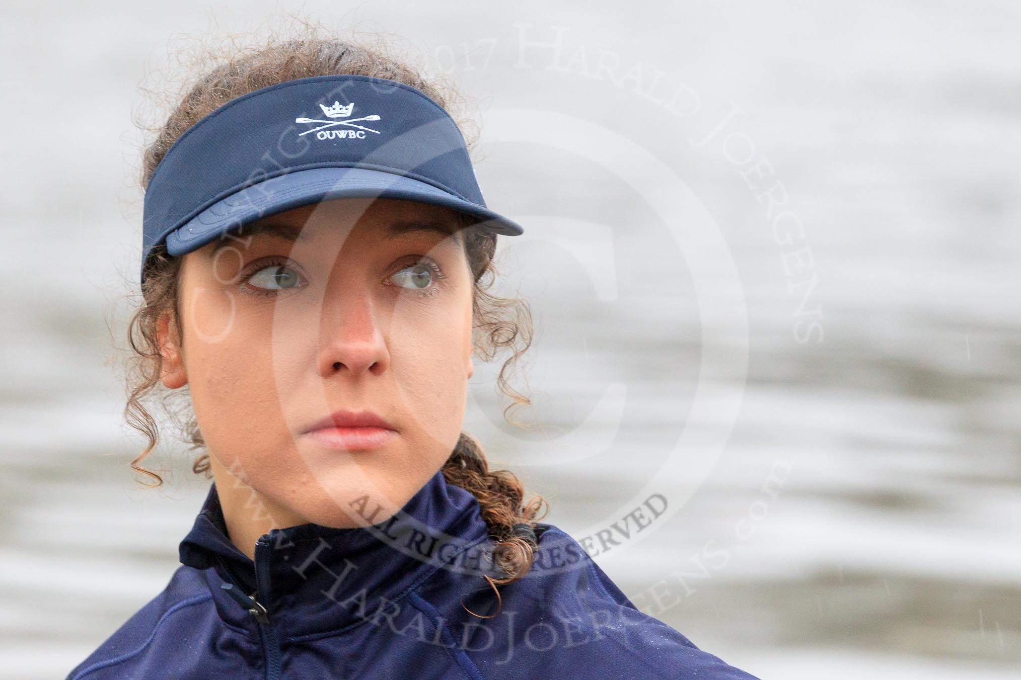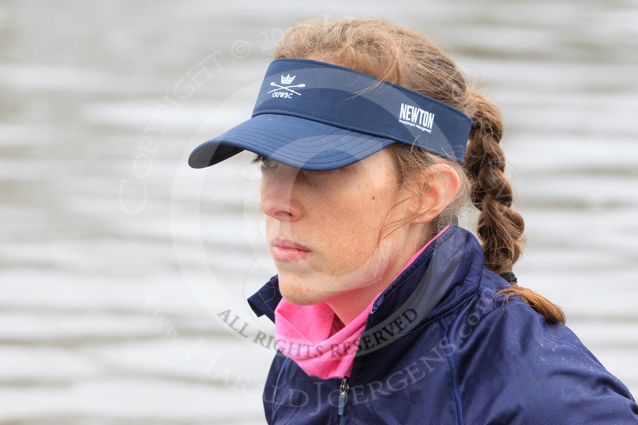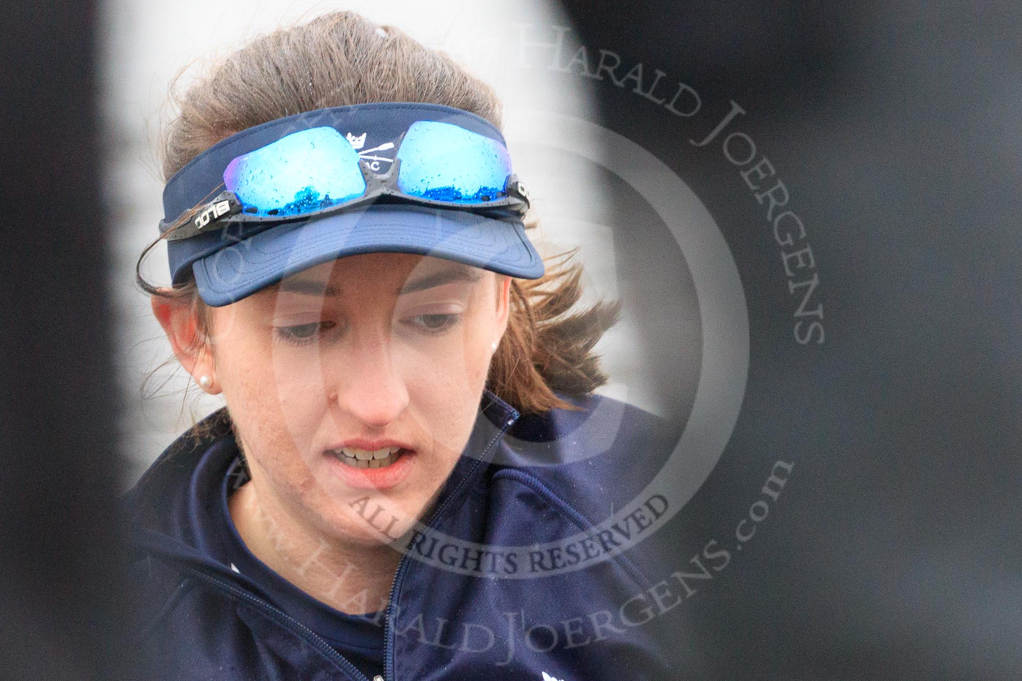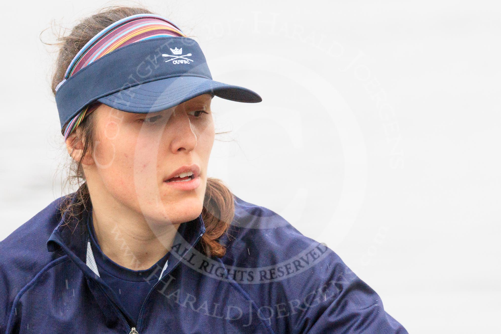The Boat Race season 2018 - Women's Boat Race Trial Eights (OUWBC, Oxford): Close-up of "Coursing River" cox Ellie Shearer.