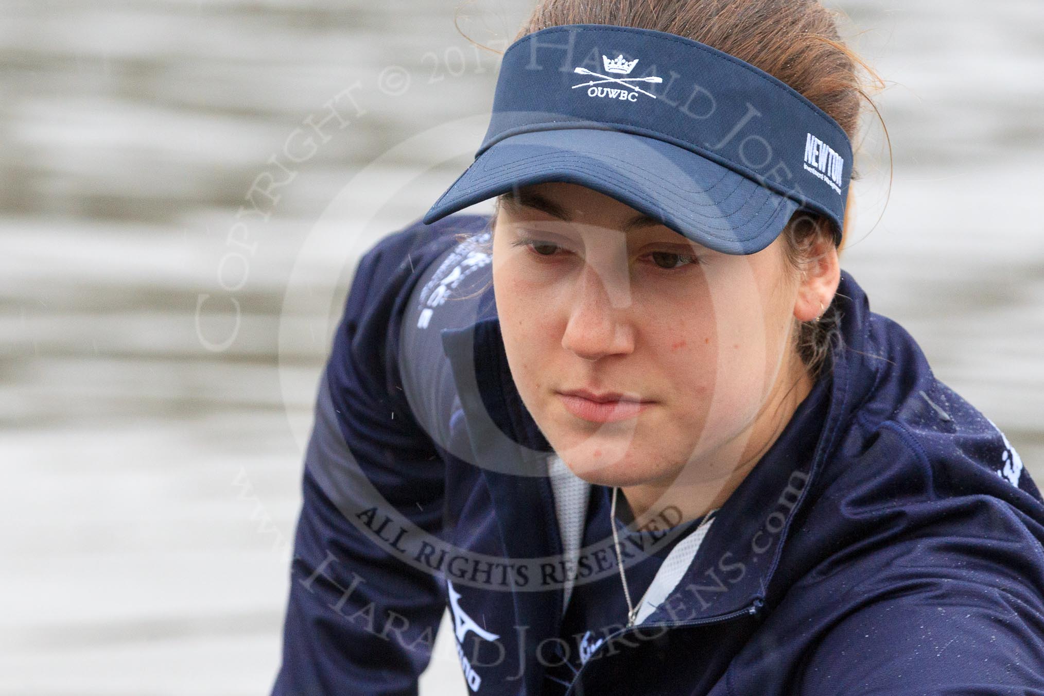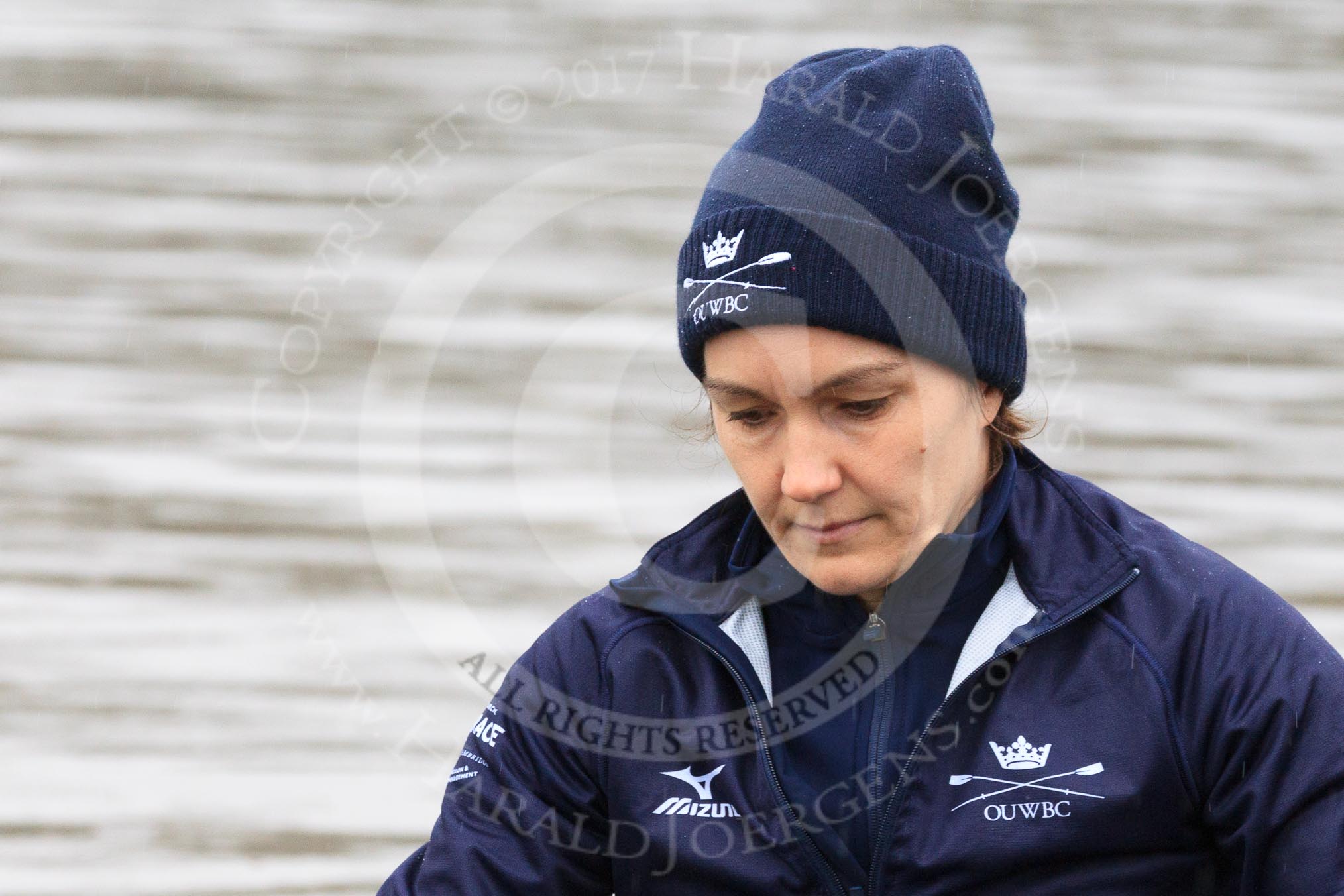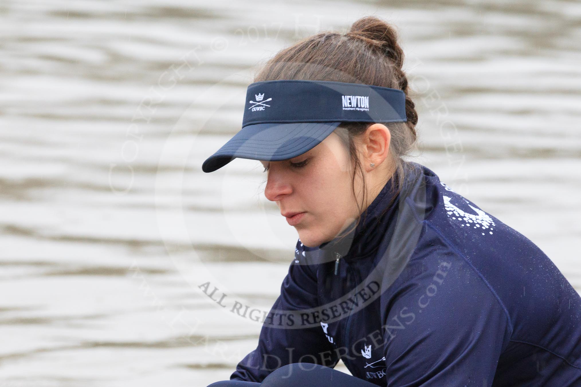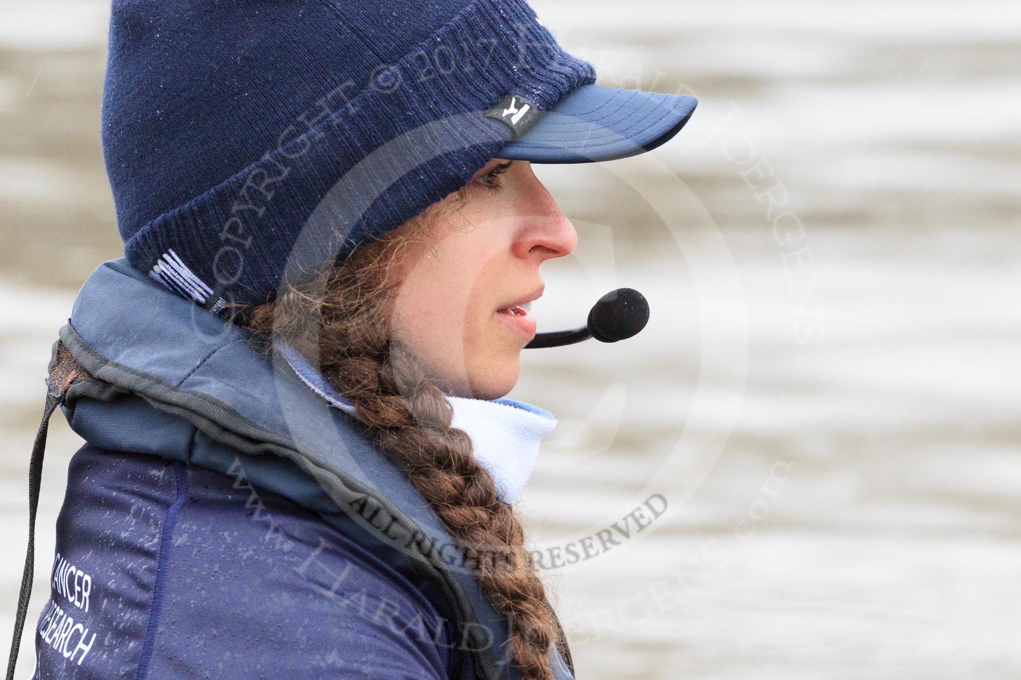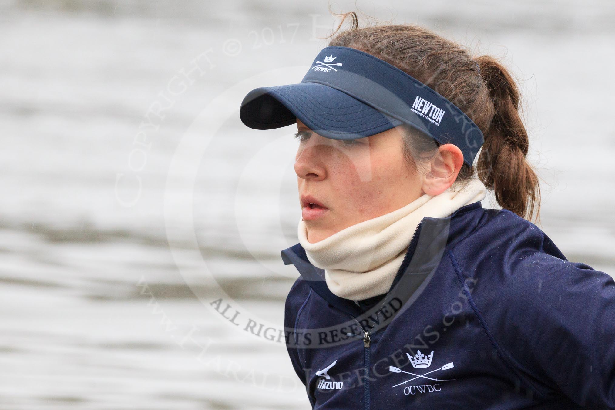 The Boat Race season 2018 - Women's Boat Race Trial Eights (OUWBC, Oxford): Close-up of "Coursing River" cox Ellie Shearer.