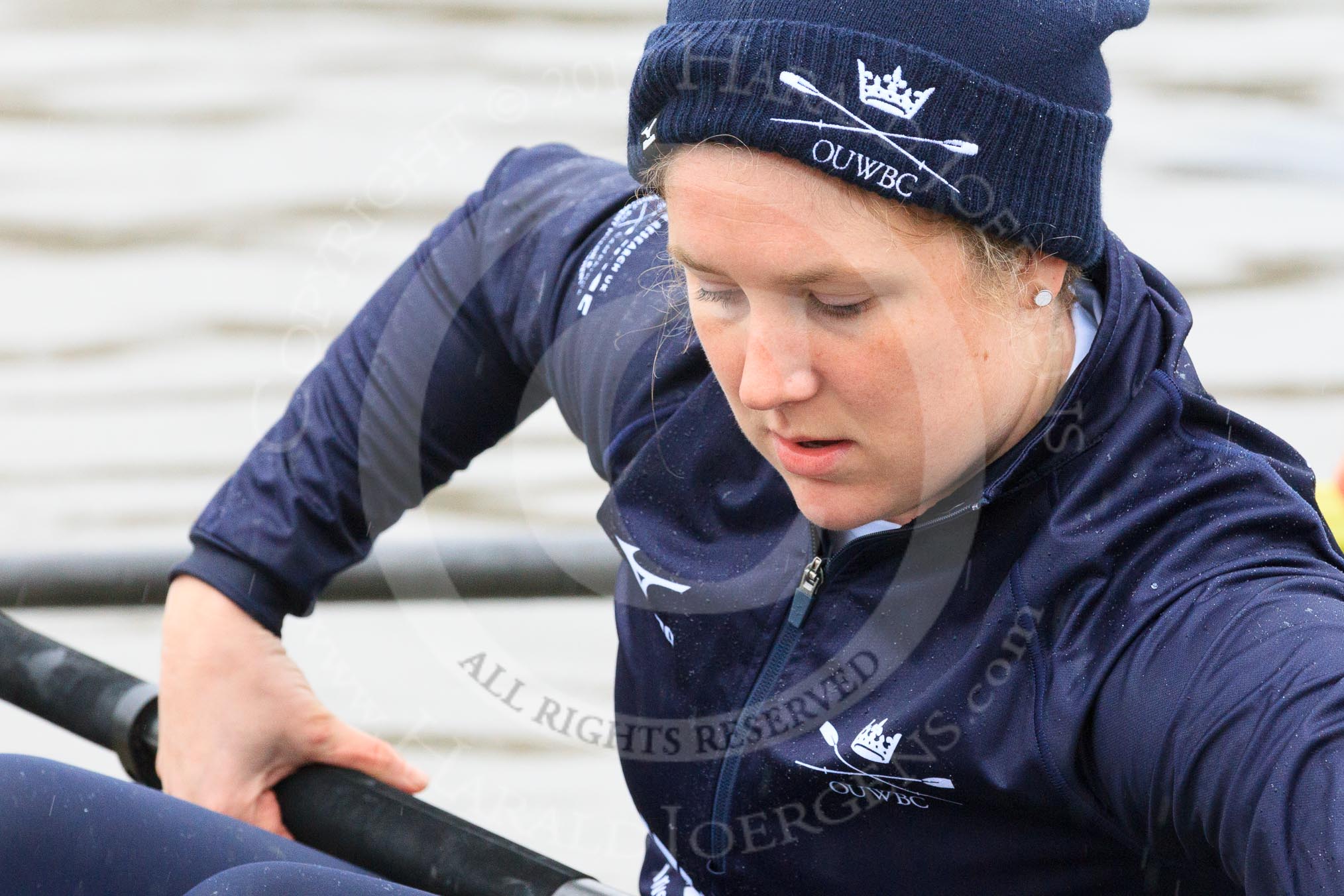 The Boat Race season 2018 - Women's Boat Race Trial Eights (OUWBC, Oxford): Close-up of "Great Typhoon" 5 seat Olivia Pryer.