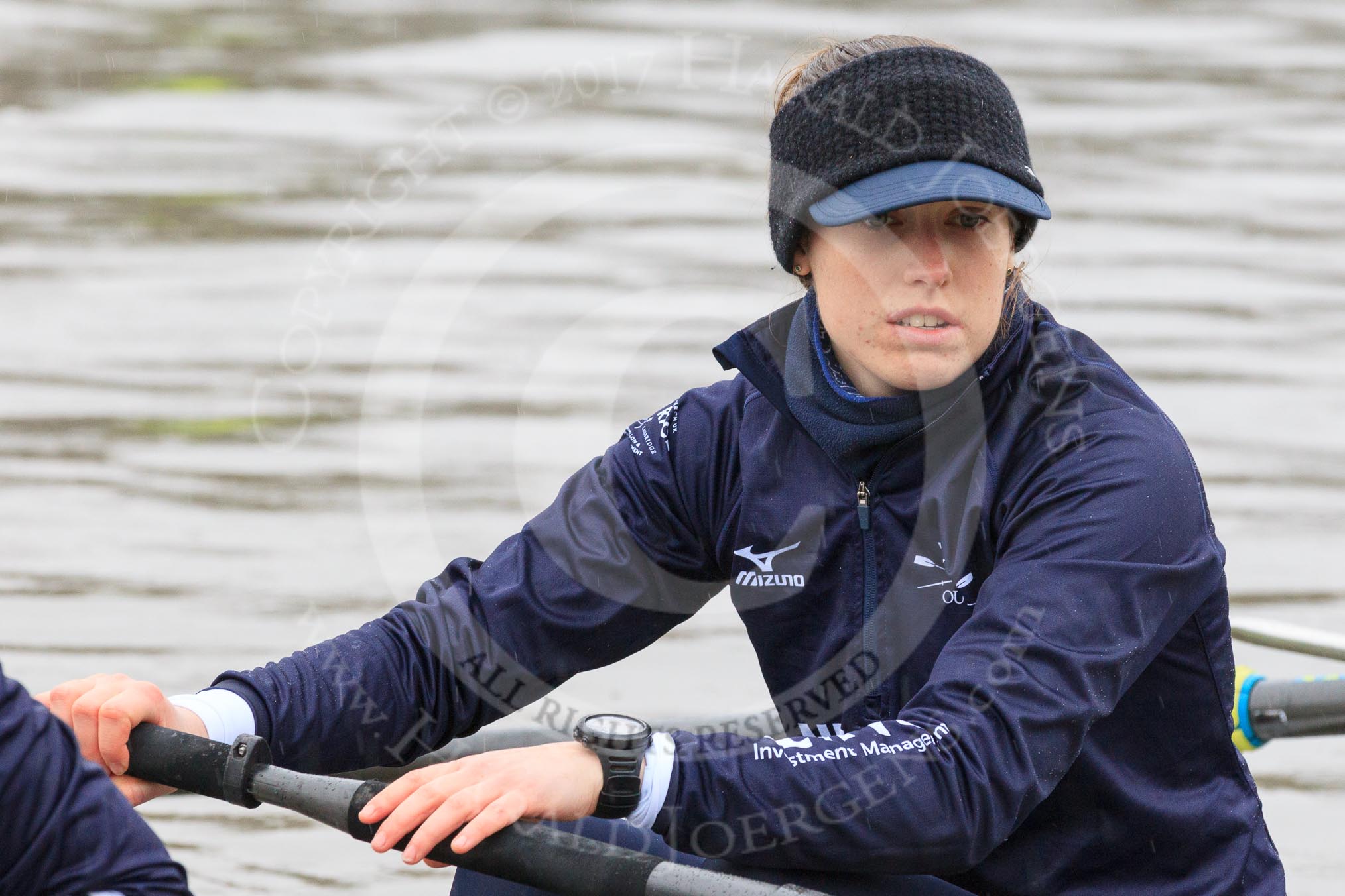 The Boat Race season 2018 - Women's Boat Race Trial Eights (OUWBC, Oxford): Close-up of "Coursing River" 4 seat Anna Murgatroyd.