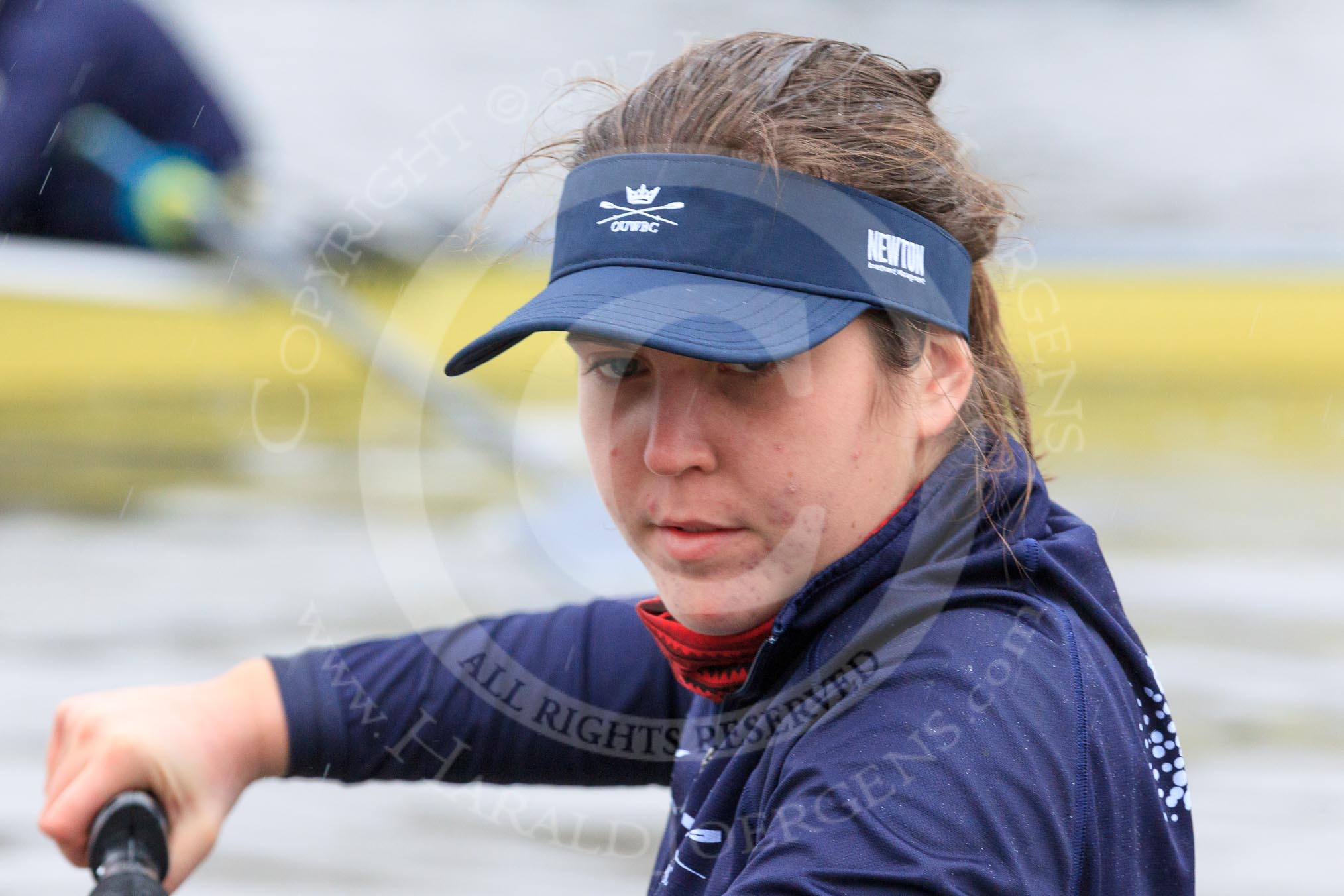The Boat Race season 2018 - Women's Boat Race Trial Eights (OUWBC, Oxford): Close-up of "Coursing River" 2 seat Rachel Anderson.