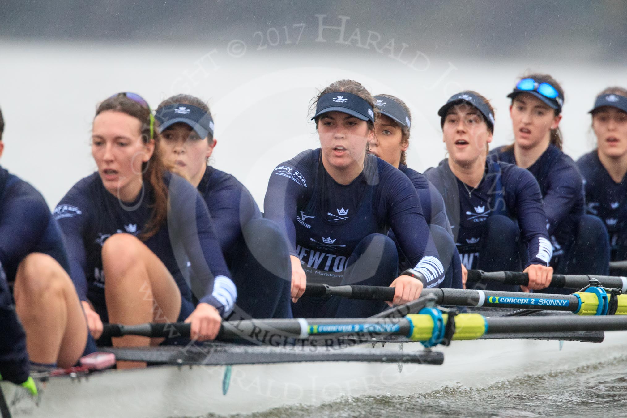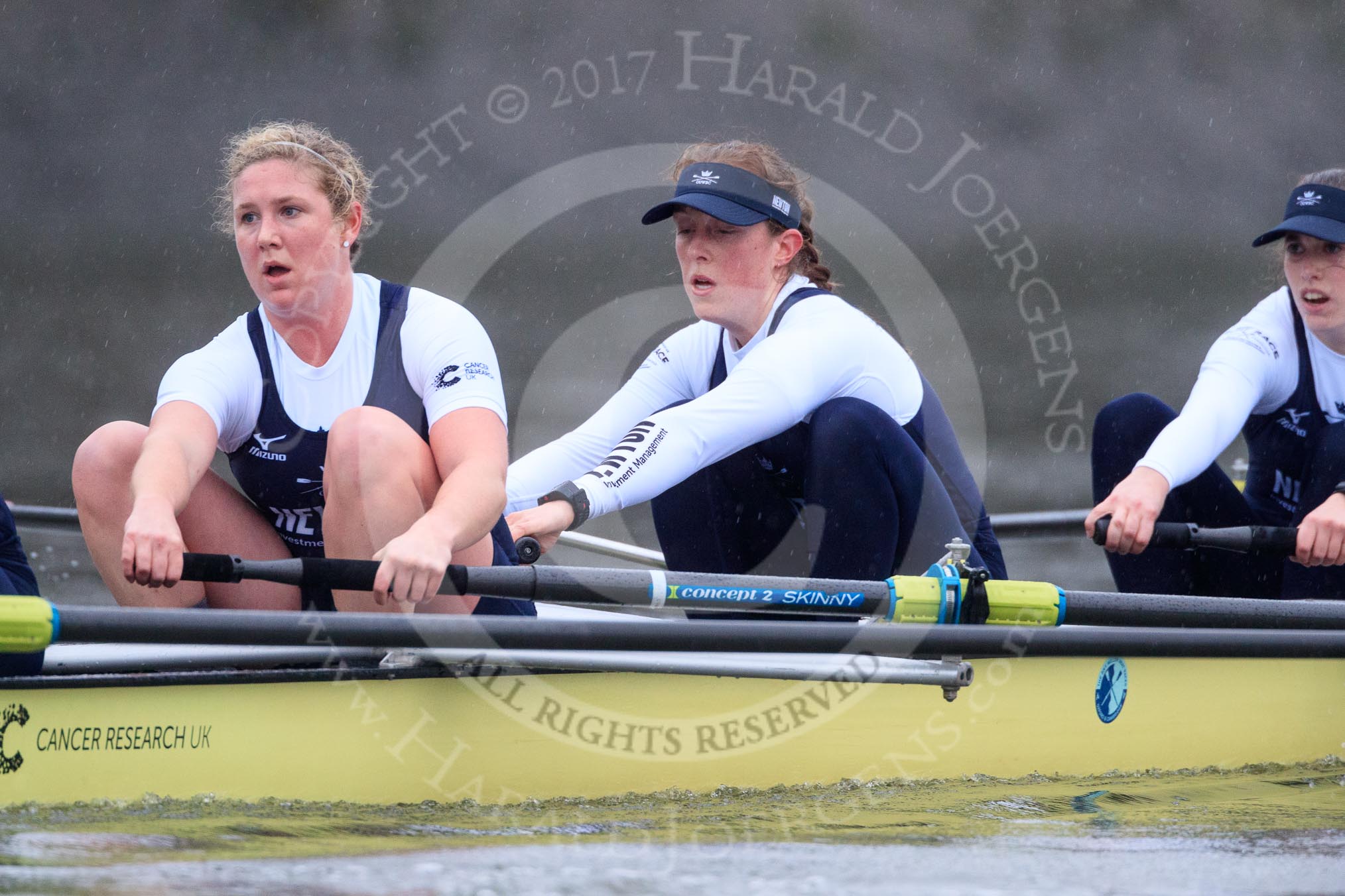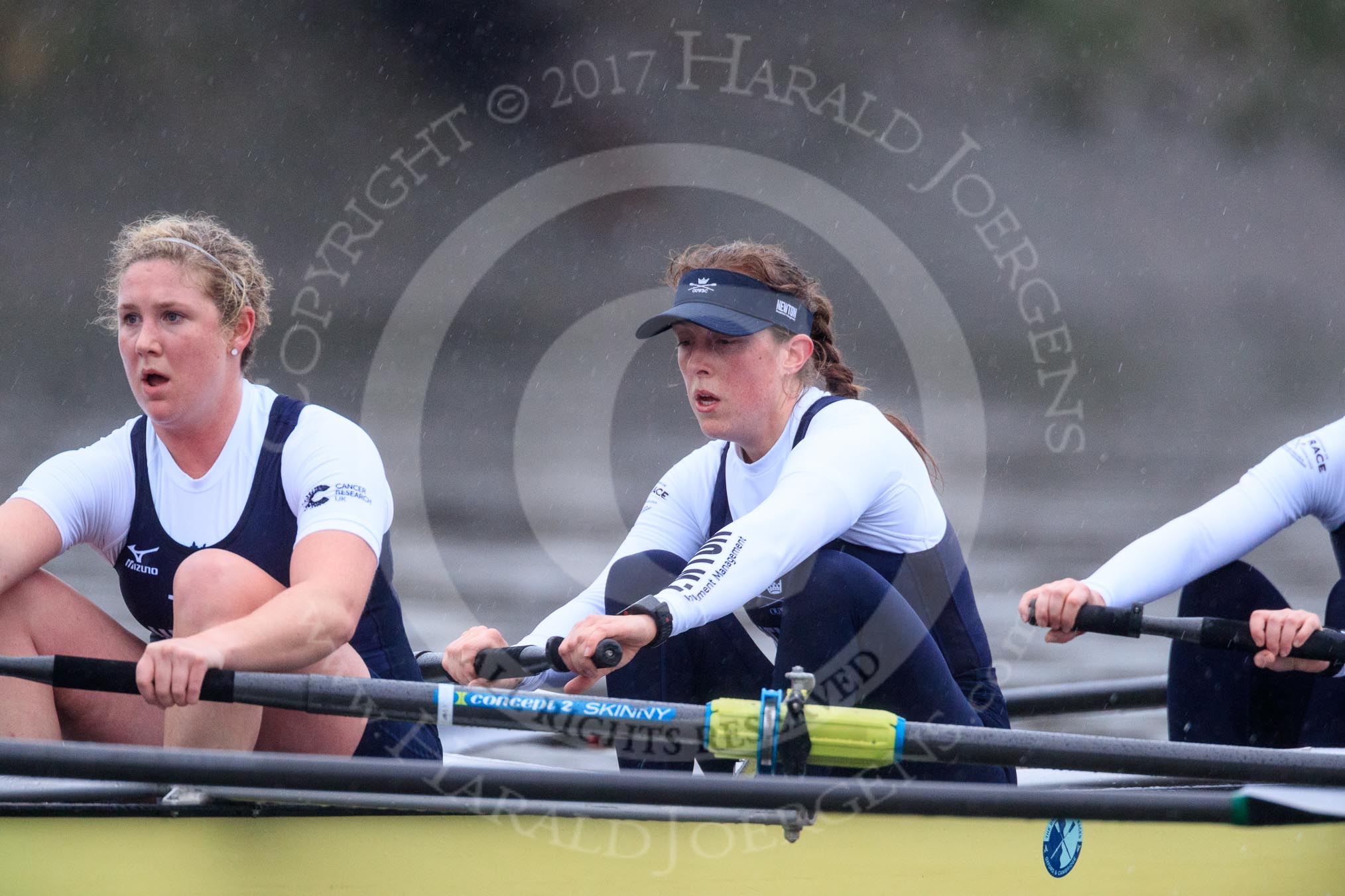 The Boat Race season 2018 - Women's Boat Race Trial Eights (OUWBC, Oxford): "Coursing River" - cox Ellie Shearer, stroke Beth Bridgman in the rain.