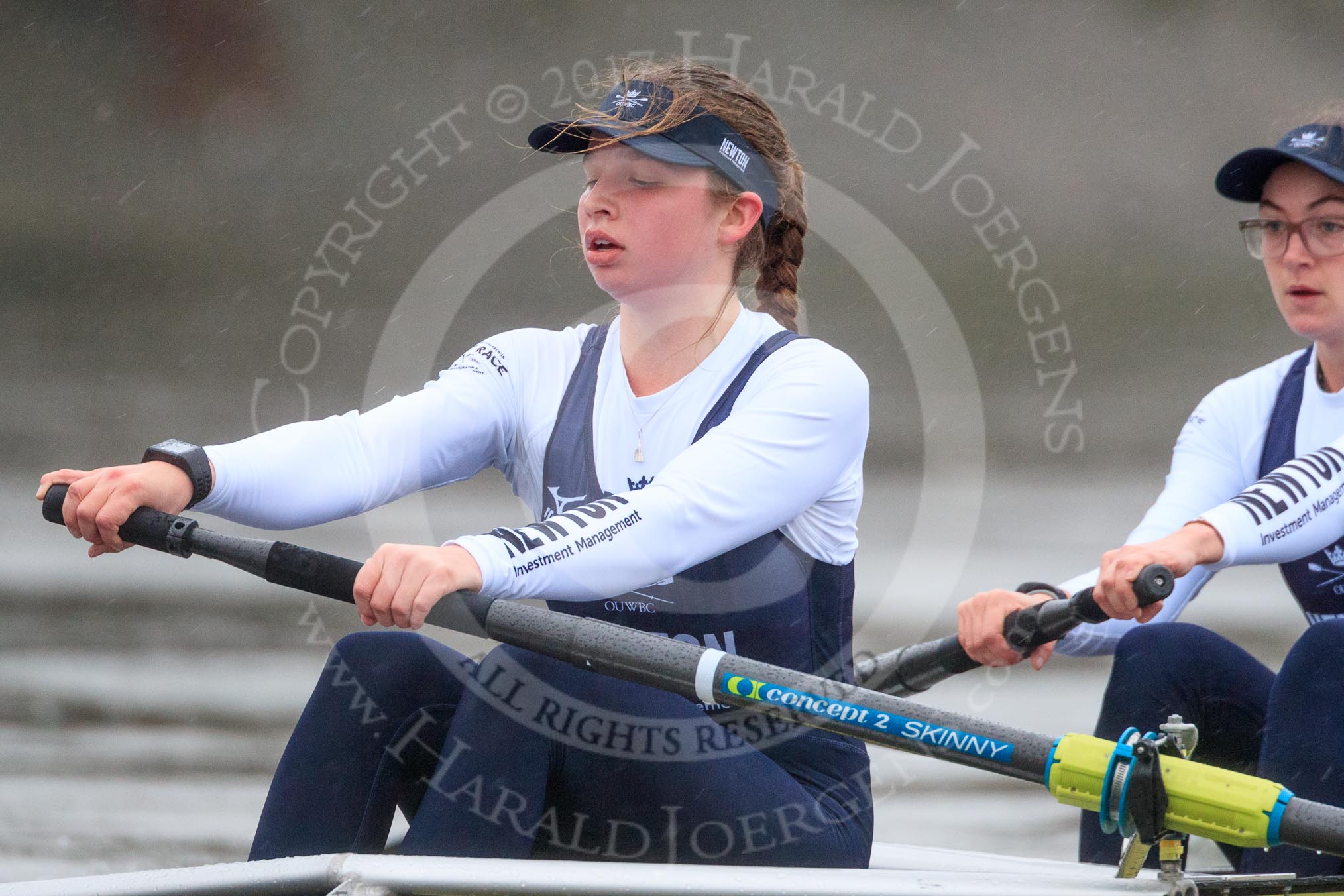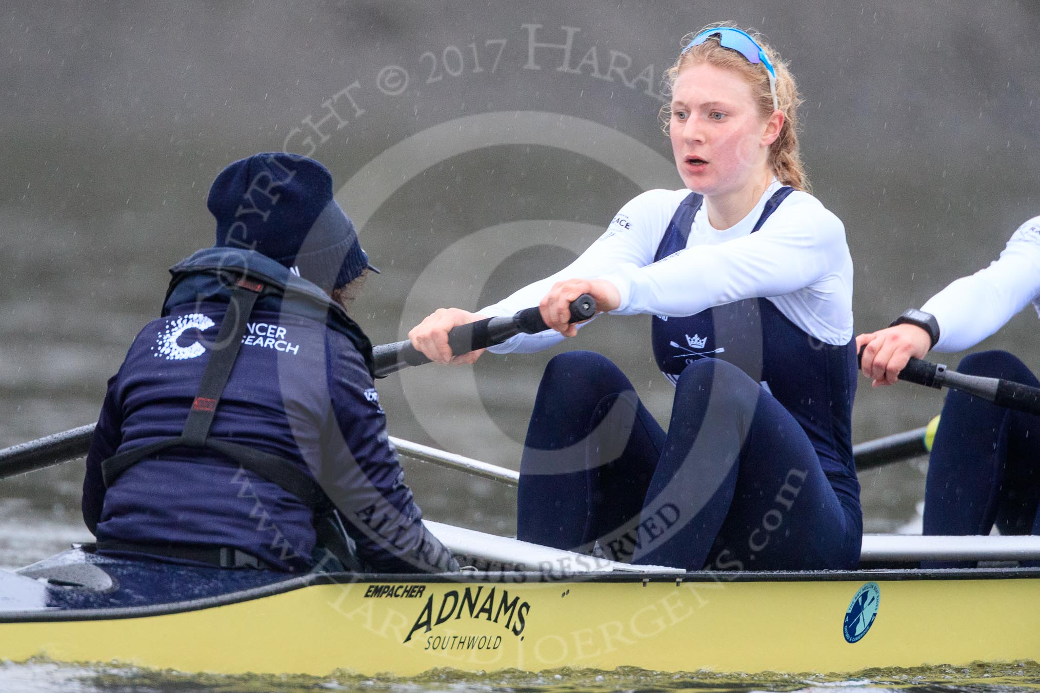 The Boat Race season 2018 - Women's Boat Race Trial Eights (OUWBC, Oxford): "Coursing River" approaching Chiswick Pier - 2 Rachel Anderson, bow Sarah Payne-Riches.