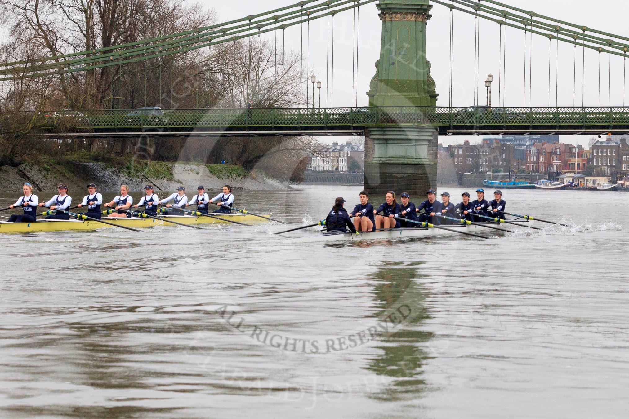 The Boat Race season 2018 - Women's Boat Race Trial Eights (OUWBC, Oxford): "Coursing River" and "Great Typhoon" at Hammersmith Bridge.