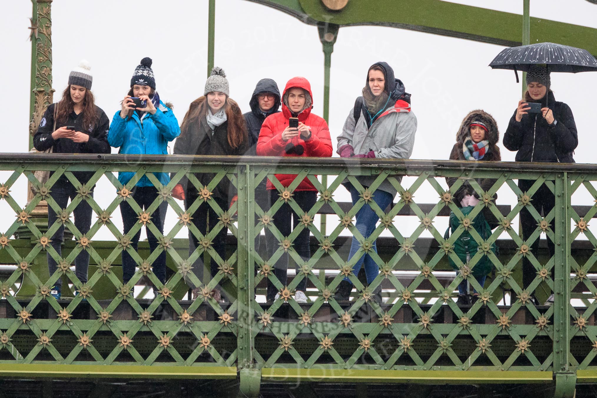 The Boat Race season 2018 - Women's Boat Race Trial Eights (OUWBC, Oxford): friends and families on Hammersmith Bridge.