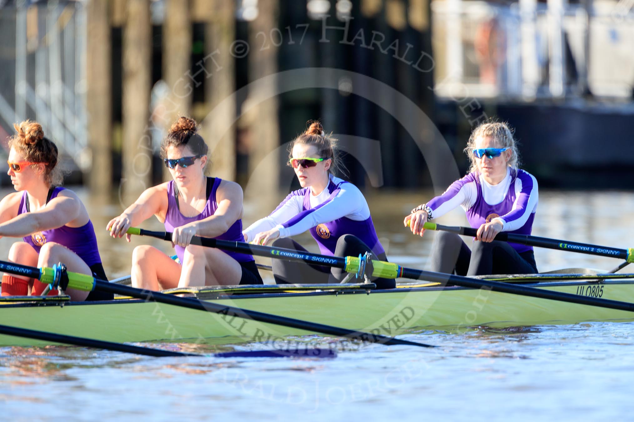 The Women's Boat Race season 2018 - fixture CUWBC vs. ULBC: CUWBC getting ready for the race - 4 Paula Wesselmann, 5 Thea Zabell, 6 Anne Beenken, 7 Imogen Grant.