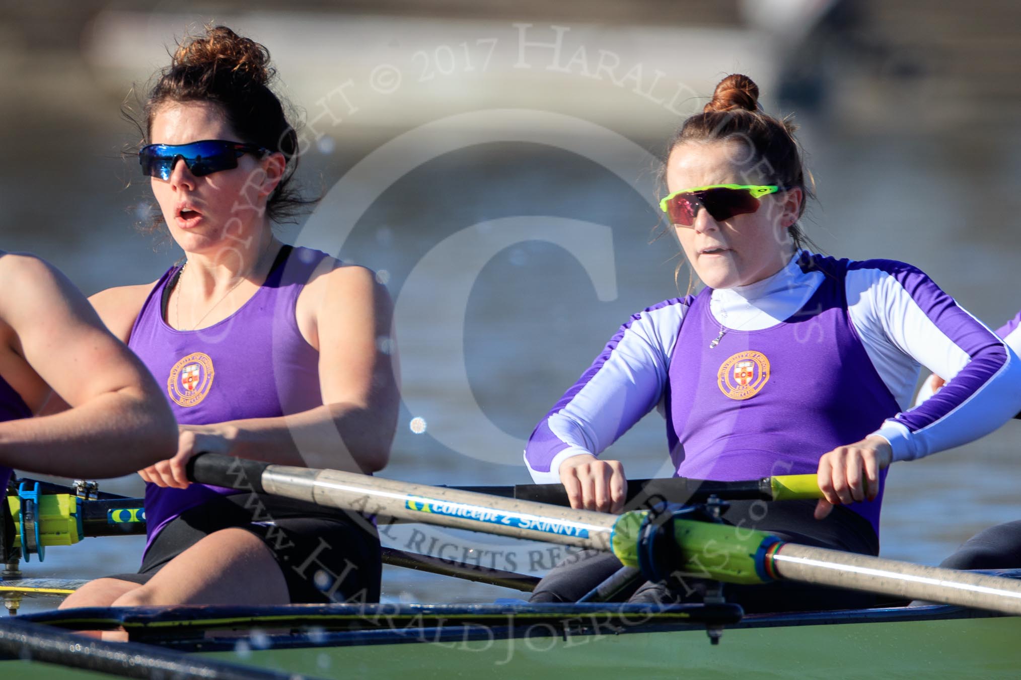The Women's Boat Race season 2018 - fixture CUWBC vs. ULBC: The ULBC Eight, here cox Lauren Holland, with stroke Issy Powel, 7 Jordan Cole-Huissan.