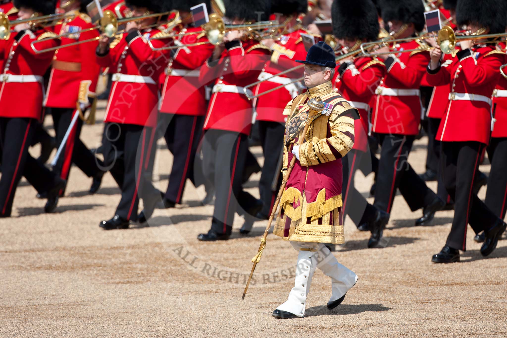 Trooping the Colour 2009: Drum Major Stephen Staite, Grenadier Guards, behind him the Band of the Scots Guards.. Horse Guards Parade, Westminster, London SW1, United Kingdom, on 13 June 2009 at 11:11, image #168