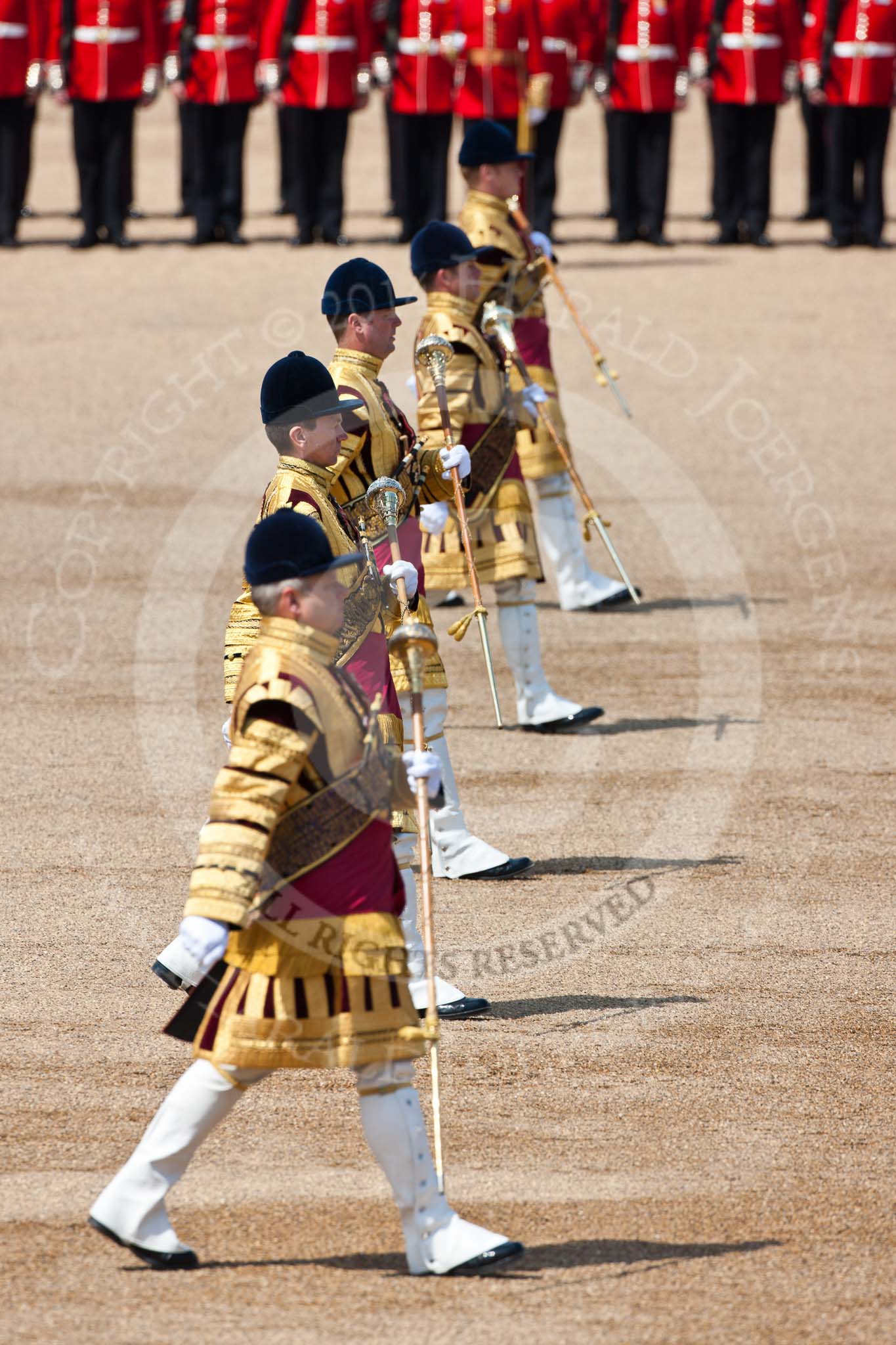 Trooping the Colour 2009: The five Drum Majors on parade, leading the Massed Bands.. Horse Guards Parade, Westminster, London SW1, United Kingdom, on 13 June 2009 at 11:12, image #170