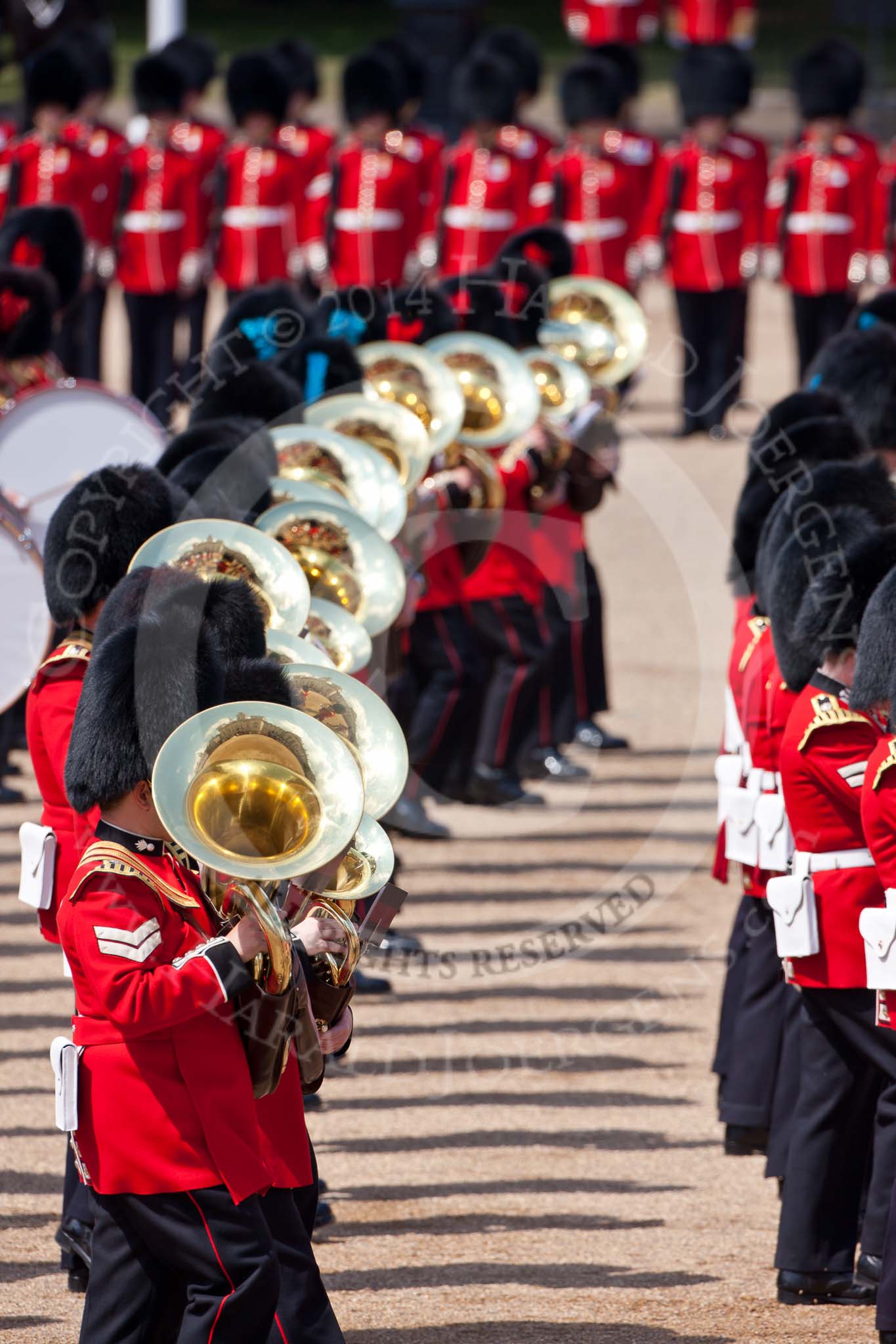 Trooping the Colour 2009: The Massed Bands playing, here a row of euphonists.. Horse Guards Parade, Westminster, London SW1, United Kingdom, on 13 June 2009 at 11:13, image #172