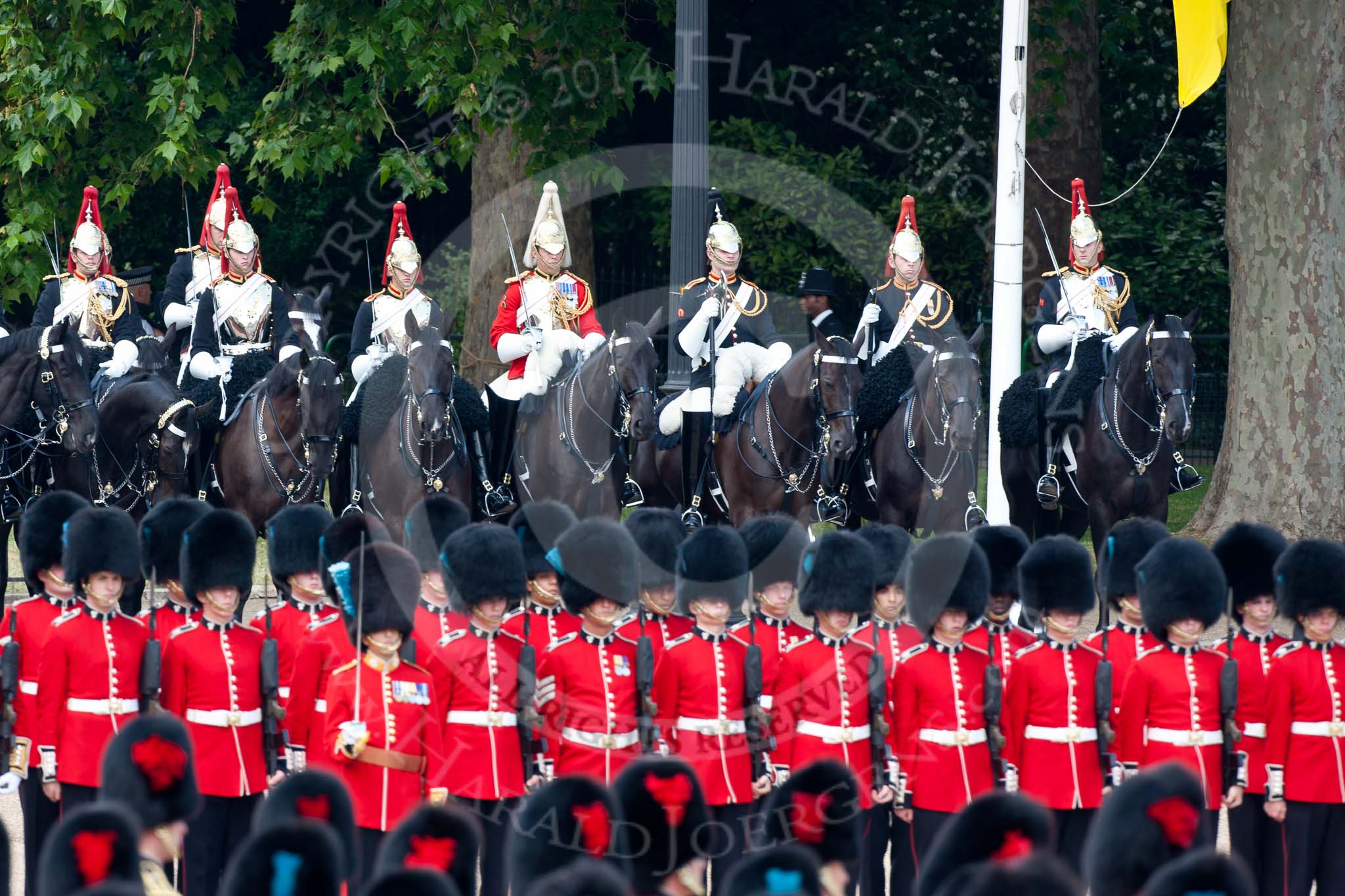 Trooping the Colour 2009: The Escort For the Colour marching forward to receive the Colour. Behind them the Major of the Parade, Major F A D L Roberts.. Horse Guards Parade, Westminster, London SW1, United Kingdom, on 13 June 2009 at 11:17, image #177