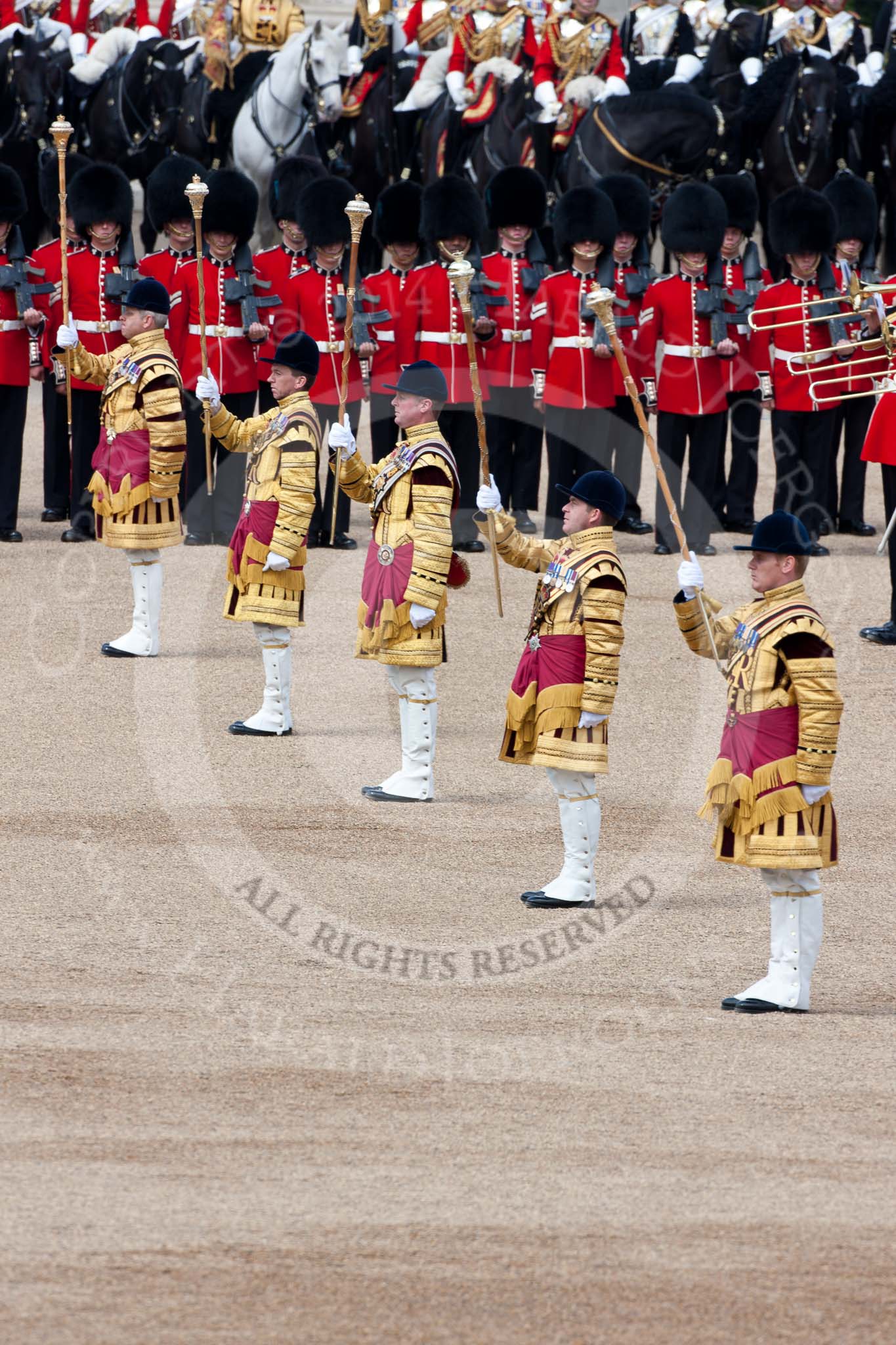 Trooping the Colour 2009: The five Drum Majors on parade, leading the Massed Bands.. Horse Guards Parade, Westminster, London SW1, United Kingdom, on 13 June 2009 at 11:24, image #195