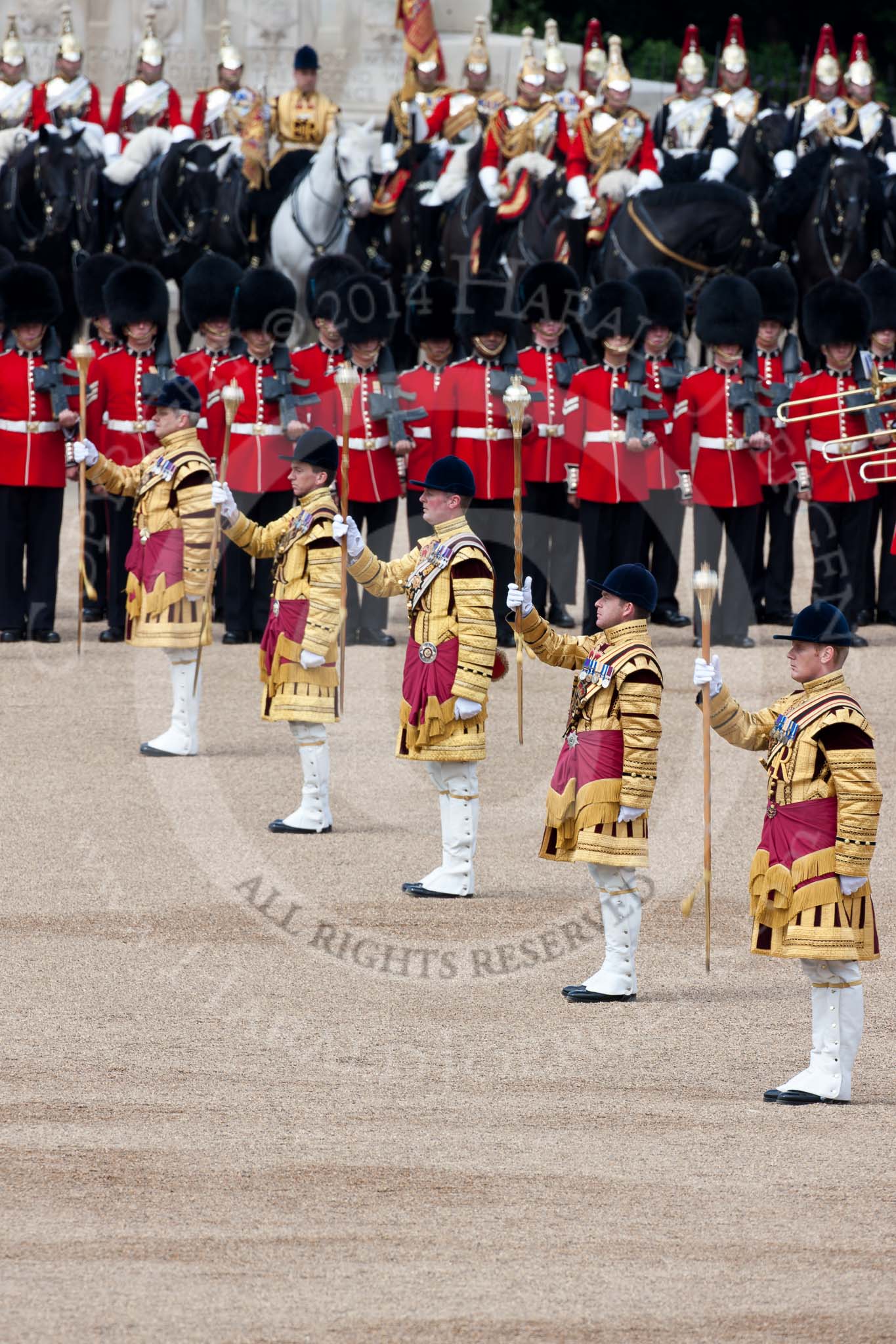 Trooping the Colour 2009: The five Drum Majors on parade, leading the Massed Bands..