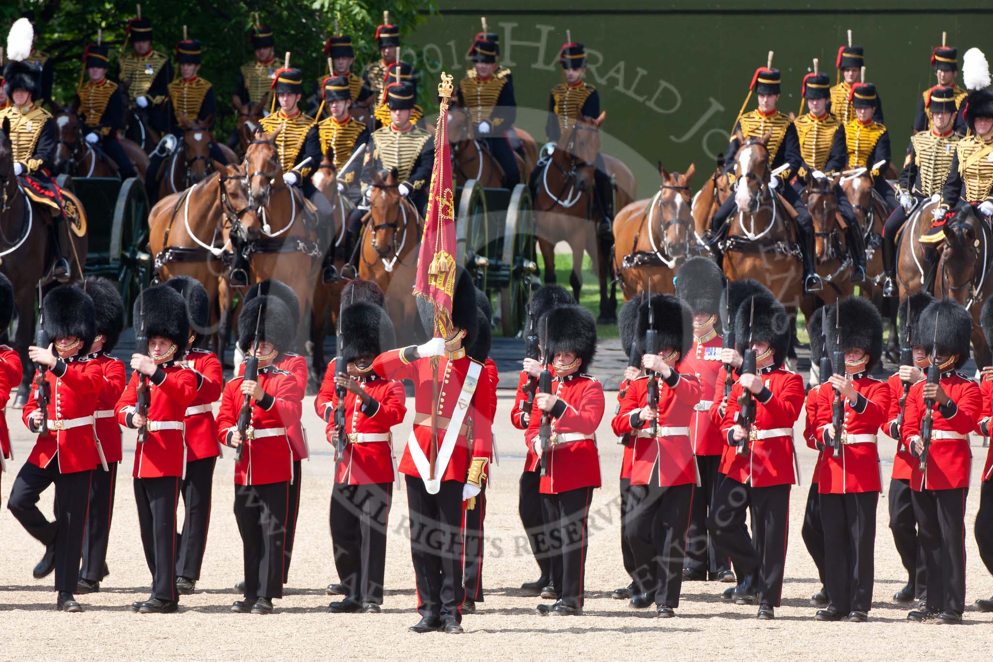 Trooping the Colour 2009: After the Colour has been trooped, the Ensign, 2nd Lieutenant Andrew Campbell, has moved to the front of the Escort to the Colour..